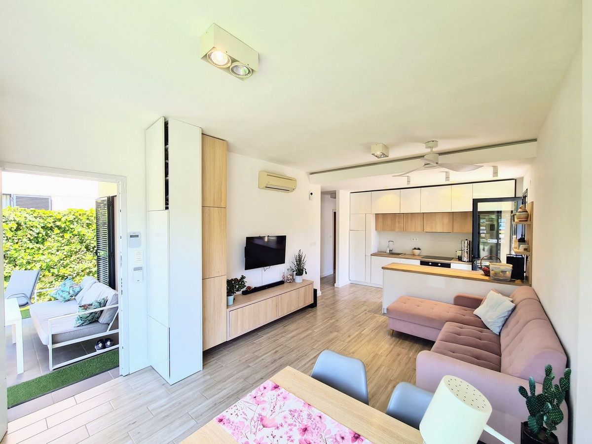 This beautiful villa features three bedrooms, two bathrooms, a spacious living/dining area, and a fully fitted kitchen. It also includes large, sun-drenched terraces, a garden, a roof solarium, air conditioning, and a private swimming pool.