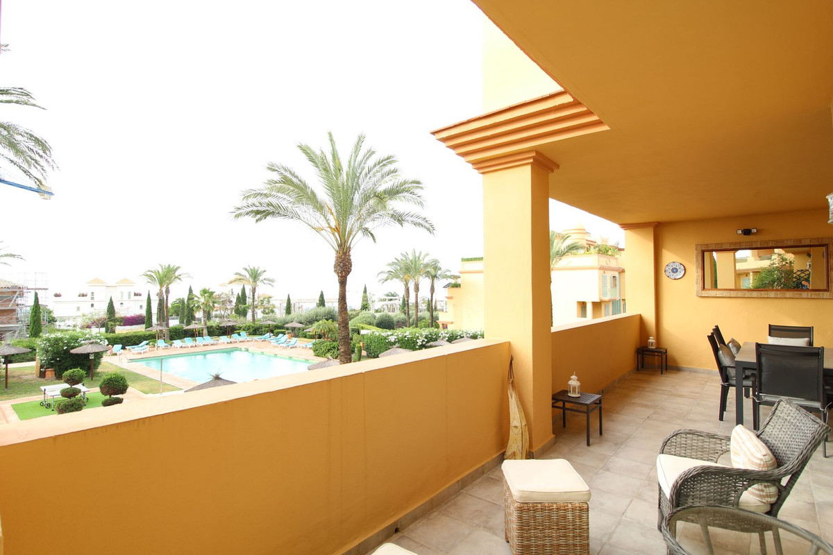 Located in the prestigious Los Flamingos Golf Resort, perfectly positioned between Marbella and Estepona, this spacious and beautifully presented first-floor apartment enjoys stunning views across lush tropical gardens and the pool, stretching out to the Mediterranean Sea beyond.