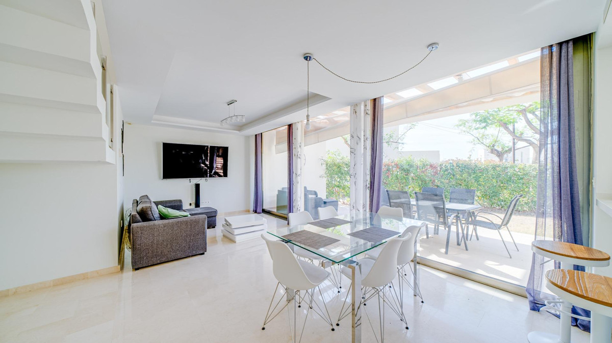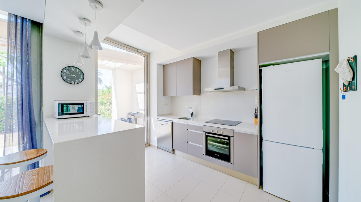 Townhouse in front of the beach in VillajoyosaThis charming townhouse is located just 50 meters from the crystal-clear waters of the best beach in Villajoyosa, "Paradiso". With a total area of 156.02 square meters, it is spread over two floors and a garden.On the ground floor, you will find a spacious and bright living-dining room, a fully equipped kitchen with an island, two bedrooms, and a bathroom. Additionally, there is a terrace of 30 square meters, perfect for enjoying outdoor meals and gatherings.Upstairs, there is another bedroom with large floor-to-ceiling windows and an en-suite bathroom. Moreover, a terrace of 46 square meters offers breathtaking sea views, ideal for enjoying the sunrise and sunset.This townhouse also comes with a garage and a storage room for your convenience. The urbanization has private access to the beach and several swimming pools, green areas, and 24-hour security for the residents' peace of mind. Don't miss this opportunity to own a piece of paradise in Villajoyosa.