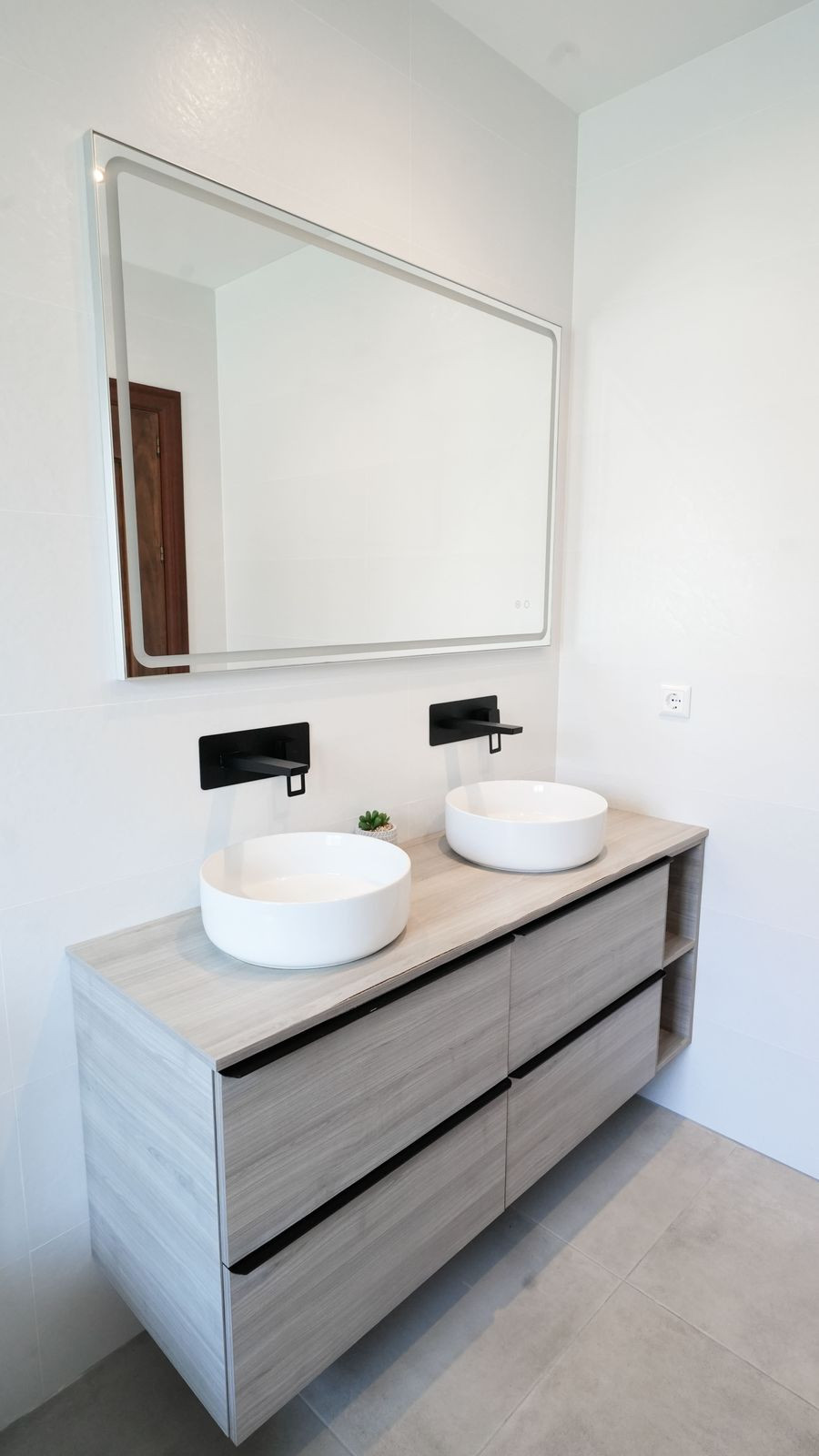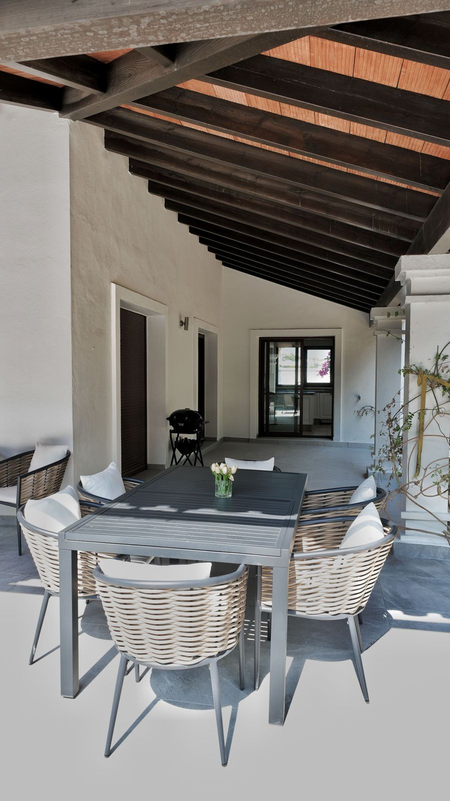 Upstairs, the entire upper floor is dedicated to the principal suite. This luxurious bedroom boasts an en-suite bathroom and direct access to a private terrace with serene views of the surrounding mountains—a perfect spot to relax and unwind.