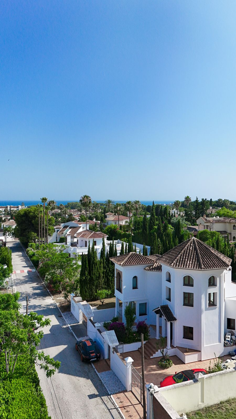 Situated in the prestigious and tranquil area of El Paraíso, Estepona, this stunning villa offers the perfect blend of space, comfort, and classic charm. Set on a generous 973 m² plot with over 400 m² built, this beautifully designed home spans two floors plus a basement, offering a functional layout ideal for family living or as a holiday retreat.