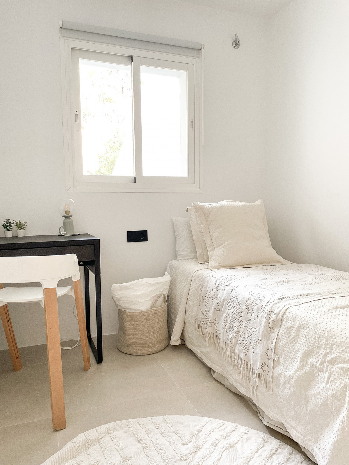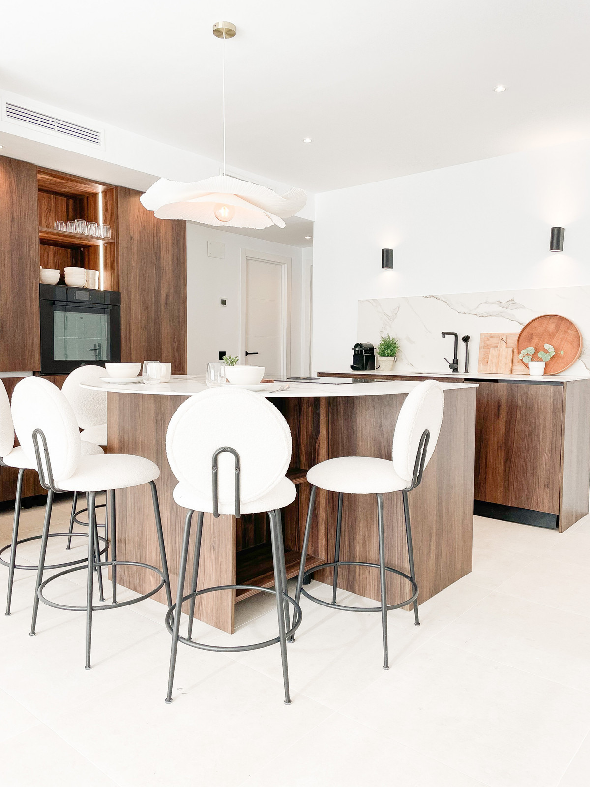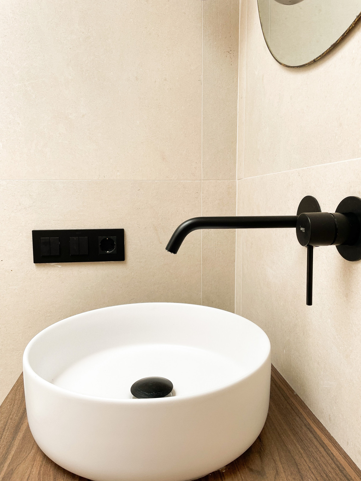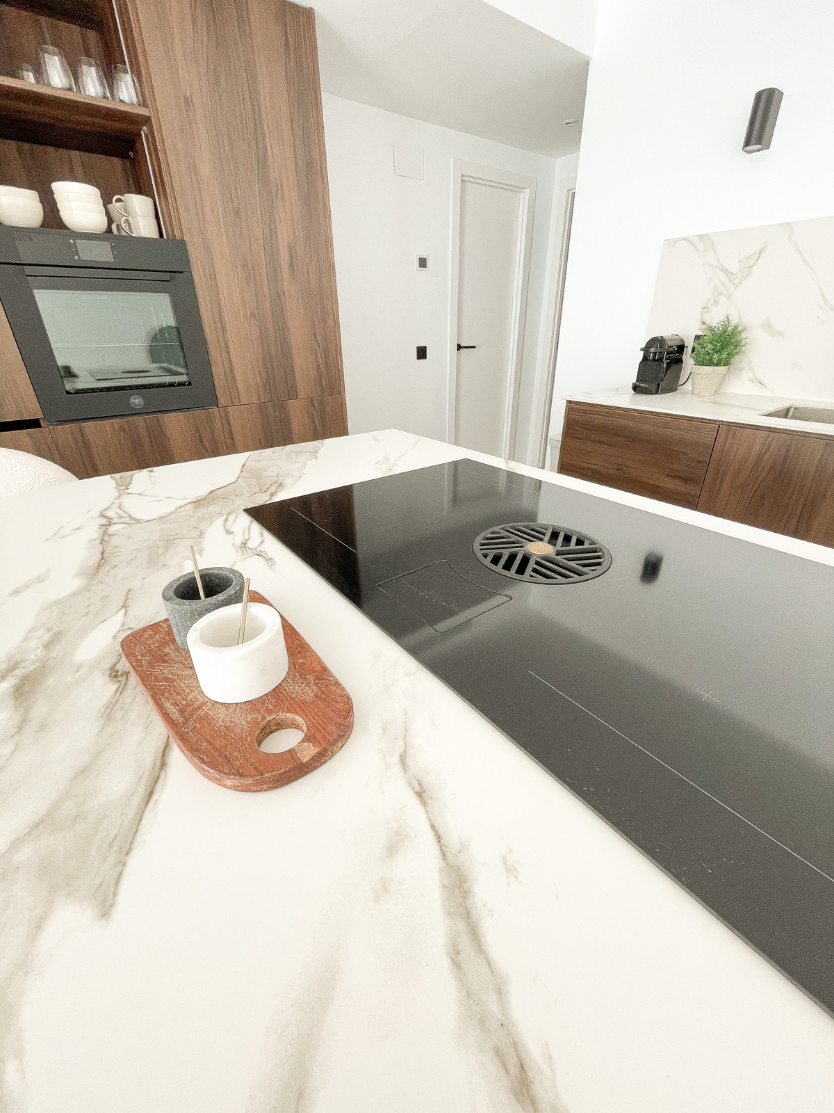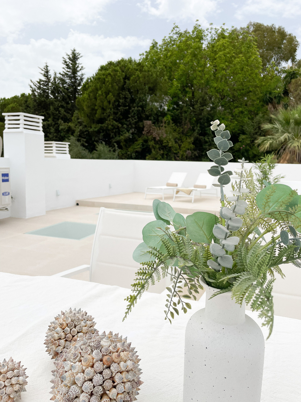The custom kitchen features a nicely contoured island and top-of-the-line Bertazzoni appliances. The bathroom walls and outdoor areas are covered with 60x60 beige porcelain tiles, which are used throughout the design to provide coherence. The two bathrooms' sleek black features and skylights give them the ideal modern touch, and you can truly live comfortably in the sun here.