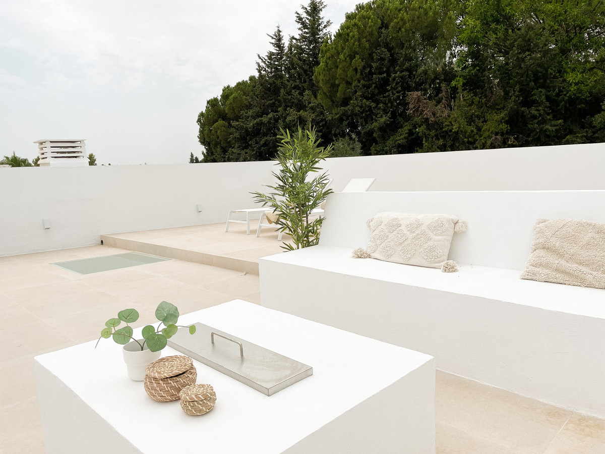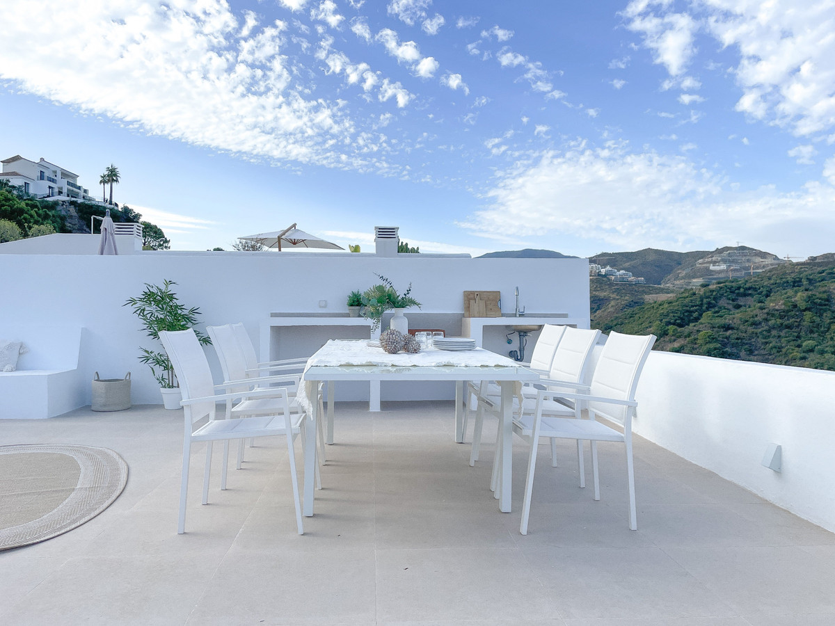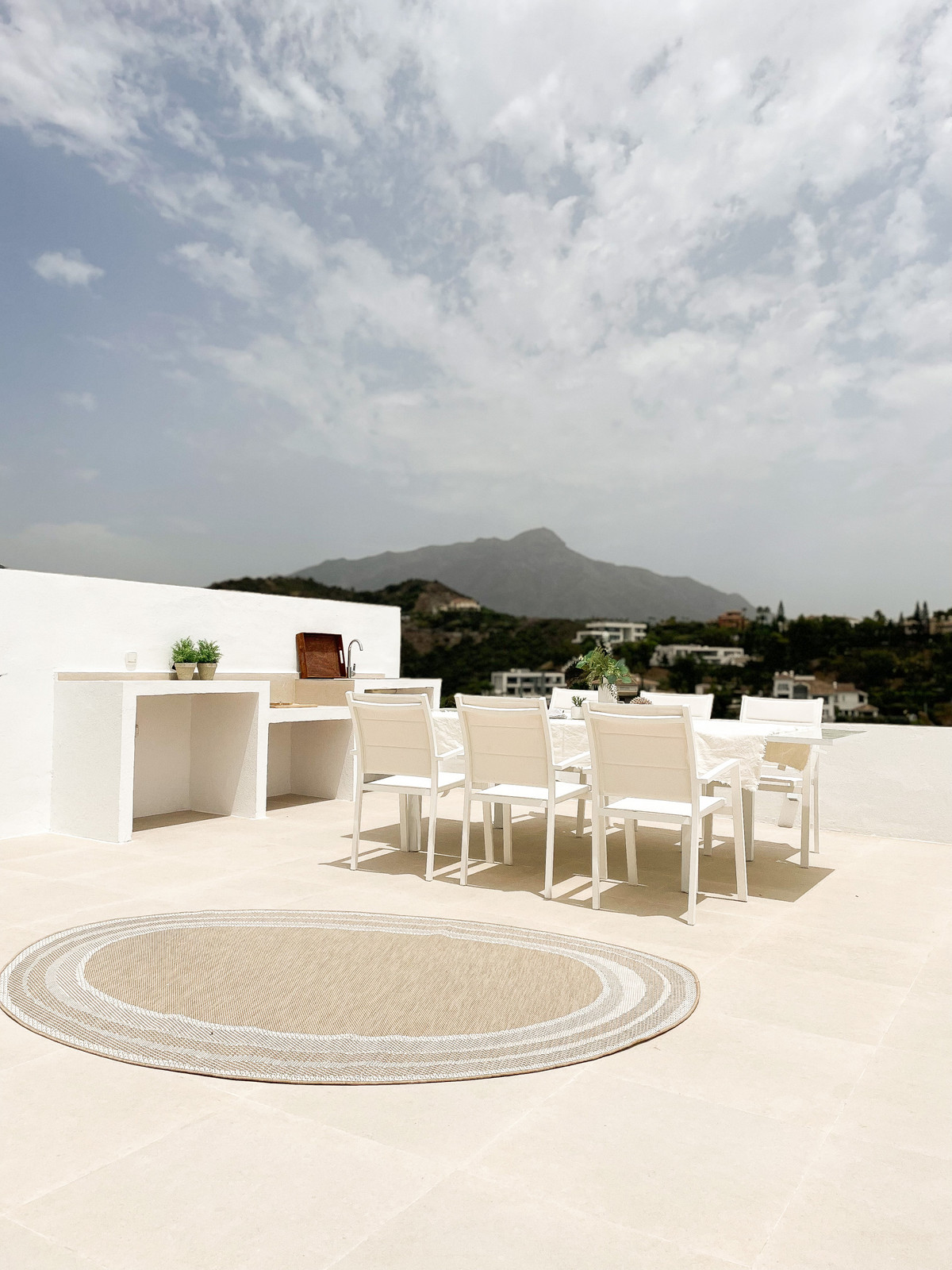 The terrace has a dining table, plenty of storage, and a bathroom. It also gets morning and midday light. The sun will be shining all day long as you go onto the roof terrace, so why not take advantage of the outdoor shower or the raised sun deck to cool off? Evenings can be spent either by the barbecue/outdoor kitchen area or in front of the custom fire table.