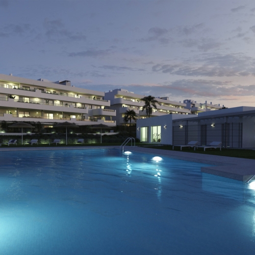 EKSKLUSIVT BOLIGOMRÅDE MED 1‑, 2‑ OG 3‑SOVEROM‐LEJLIGHEDER VED ESTEPONA GOLF