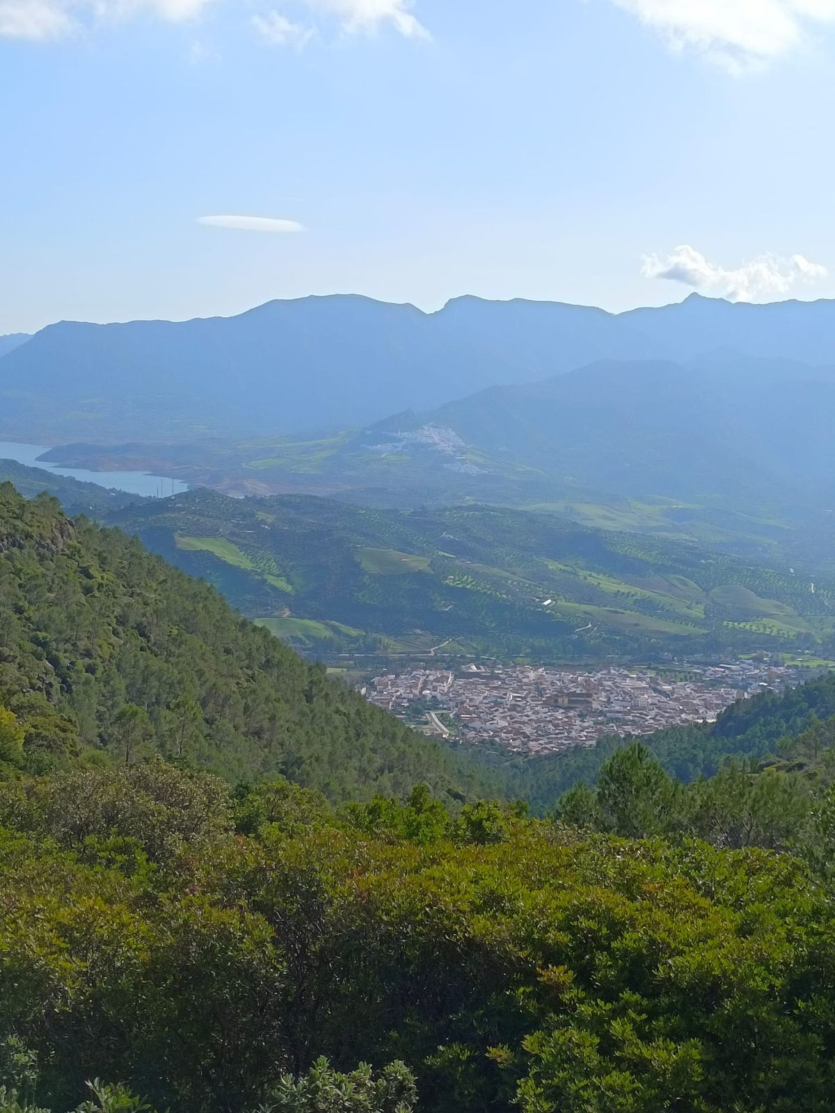 Udsigt : Bjerge, Byzone, Vej.