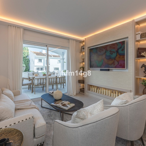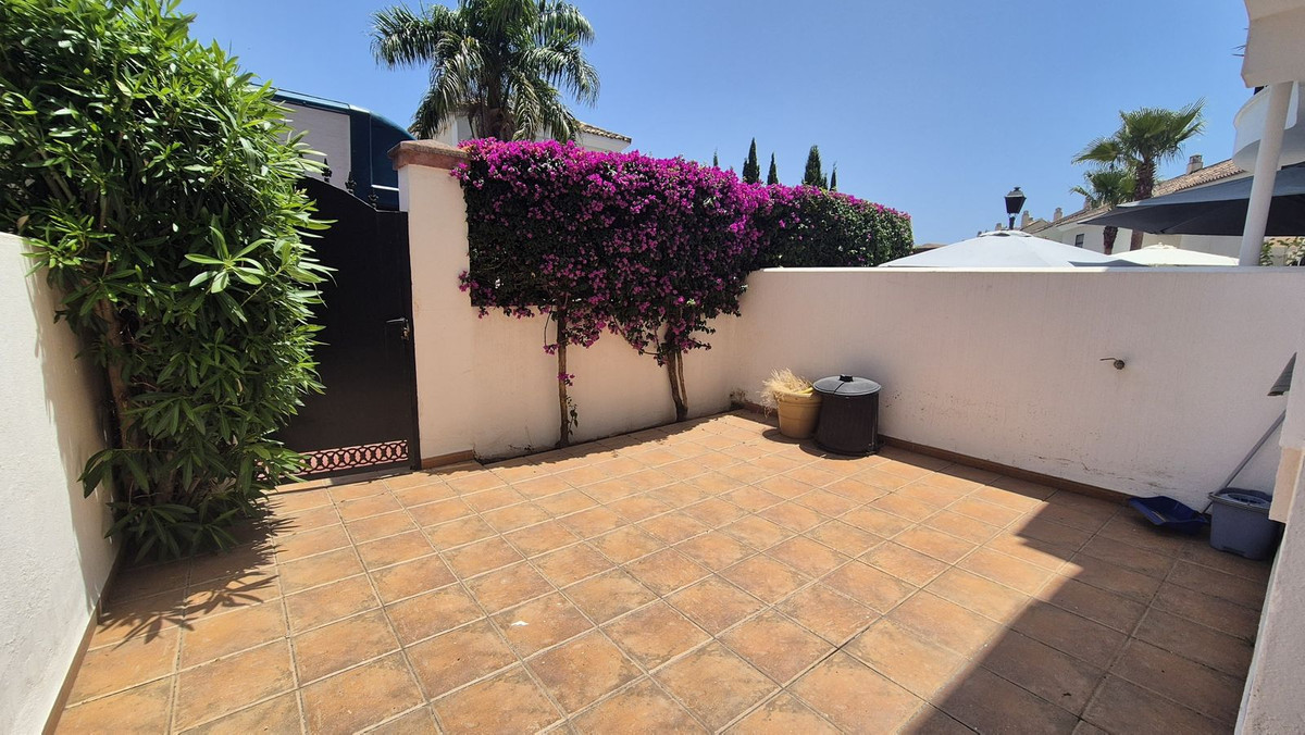 Elegant Family Townhouse in the Heart of Nueva Andalucía, Marbella´s Golf ValleyWelcome to this beautifully maintained and spacious townhouse, ideally situated in the prestigious Golf Valley of Nueva Andalucía. This four-level home combines comfort, style, and convenience—perfect for family living or as a luxurious holiday retreat.The main floor welcomes you with sunny patio, leading into a large, fully equipped independent kitchen. The generous open-plan living and dining area flows seamlessly onto a west-facing terrace and private garden, with direct access to the community swimming pool—ideal for relaxing or entertaining. A guest toilet adds practicality to this level. On the first floor, you'll find two generously sized bedrooms, each with its own ensuite bathroom and private terrace, offering peaceful retreats with ample natural light. The top floor hosts a spacious bedroom featuring an ensuite bathroom, a large terrace with panoramic views of the golf course, and a sunny west-facing solarium for tranquil evenings.The expansive basement with natural light is a versatile space, perfect for -another bedroom, home cinema, playroom, office, or music studio. It also includes a guest bathroom, a laundry area, and direct access to an underground private garage with space for two vehicles. The house is constructed with the best quality materials and finishings. Located in an exclusive and private complex with very few neighbors. Enjoy tranquility in the beautifully landscaped gardens, swimming pool and gym area, Just a short drive to Puerto Banús and Marbella, it's an unbeatable location for golf lovers and those seeking the best of Costa del Sol living. Move-in ready—don't miss this exceptional opportunity!