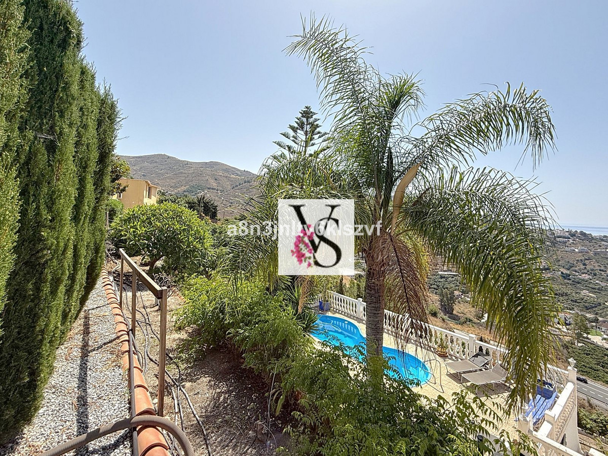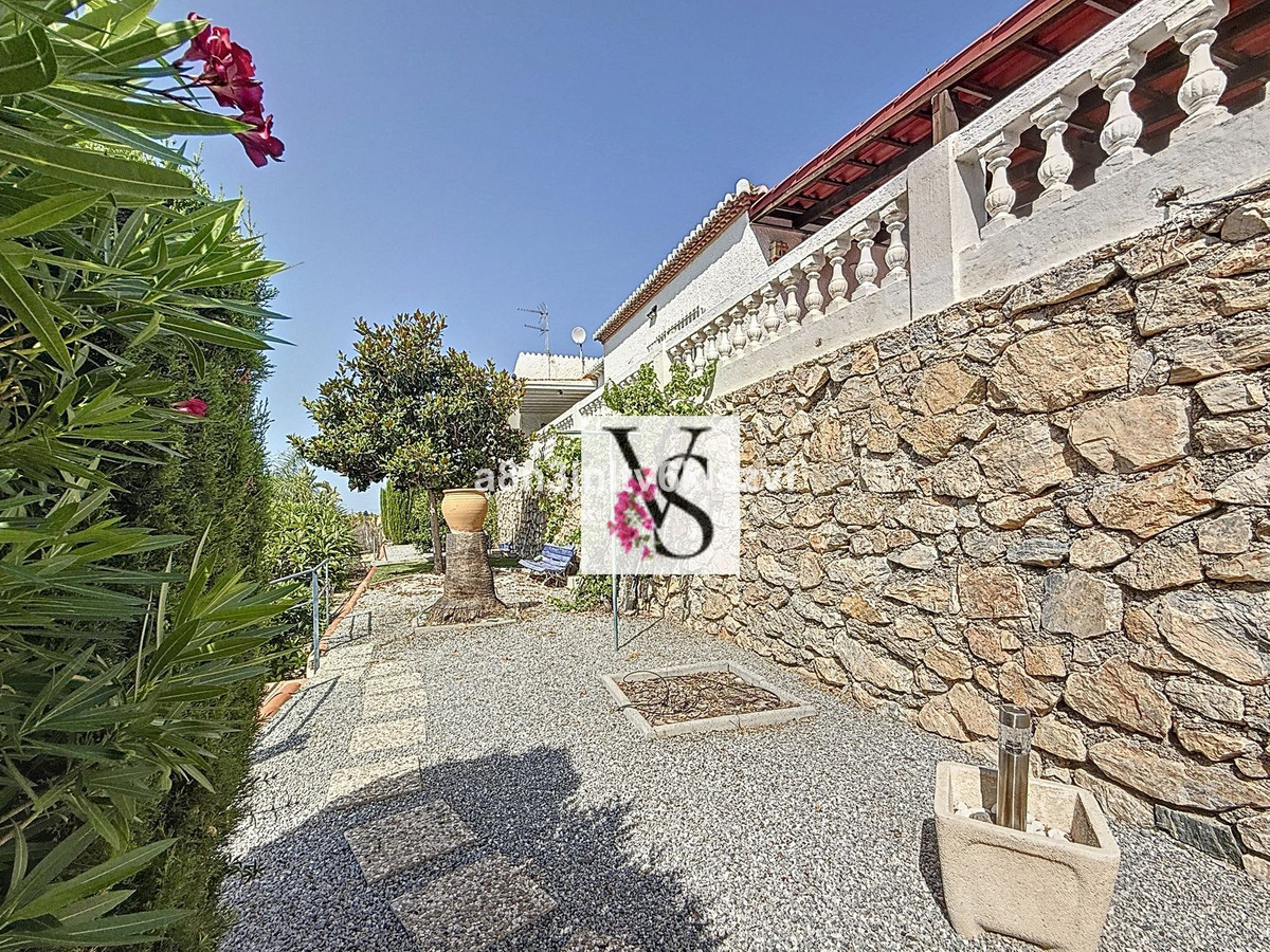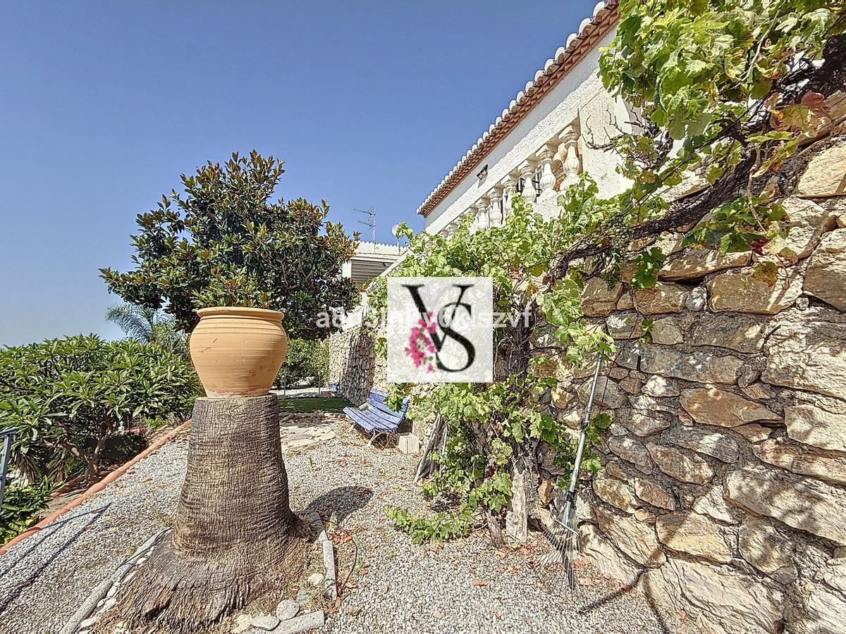 Den 2.800 m² store grund er fuldt ud brugbar og anlagt i niveauer, hvilket giver struktur og æstetik. Terrasserne er beplantet med modne frugttræer som avocado, appelsin, figen og oliven. Et automatisk vandingssystem, et ekstra vandreservoir og en energieffektiv installation af solceller koblet til en kraftig batteri på 10,5 kW gør vedligeholdelse og energistyring enkel og bæredygtig. Denne kombination sikrer ikke kun en betydelig reduktion af energikostnaderne, men øger også uafhængigheden af elnettet — en værdifuld fordel i det varme sydlige Spanien. Batteriet lagrer energi, der er produceret om dagen, til brug om aftenen eller på tidspunkter med lidt sollys.