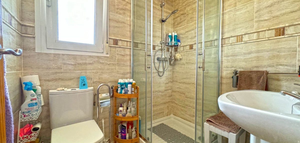 The second floor includes 2 bedrooms, each with an en-suite bathroom, providing additional private space. From here you reach the big terrace that goes around the corner of the house overlooking the swimming pool and also your way up to the solarium for beautiful views.