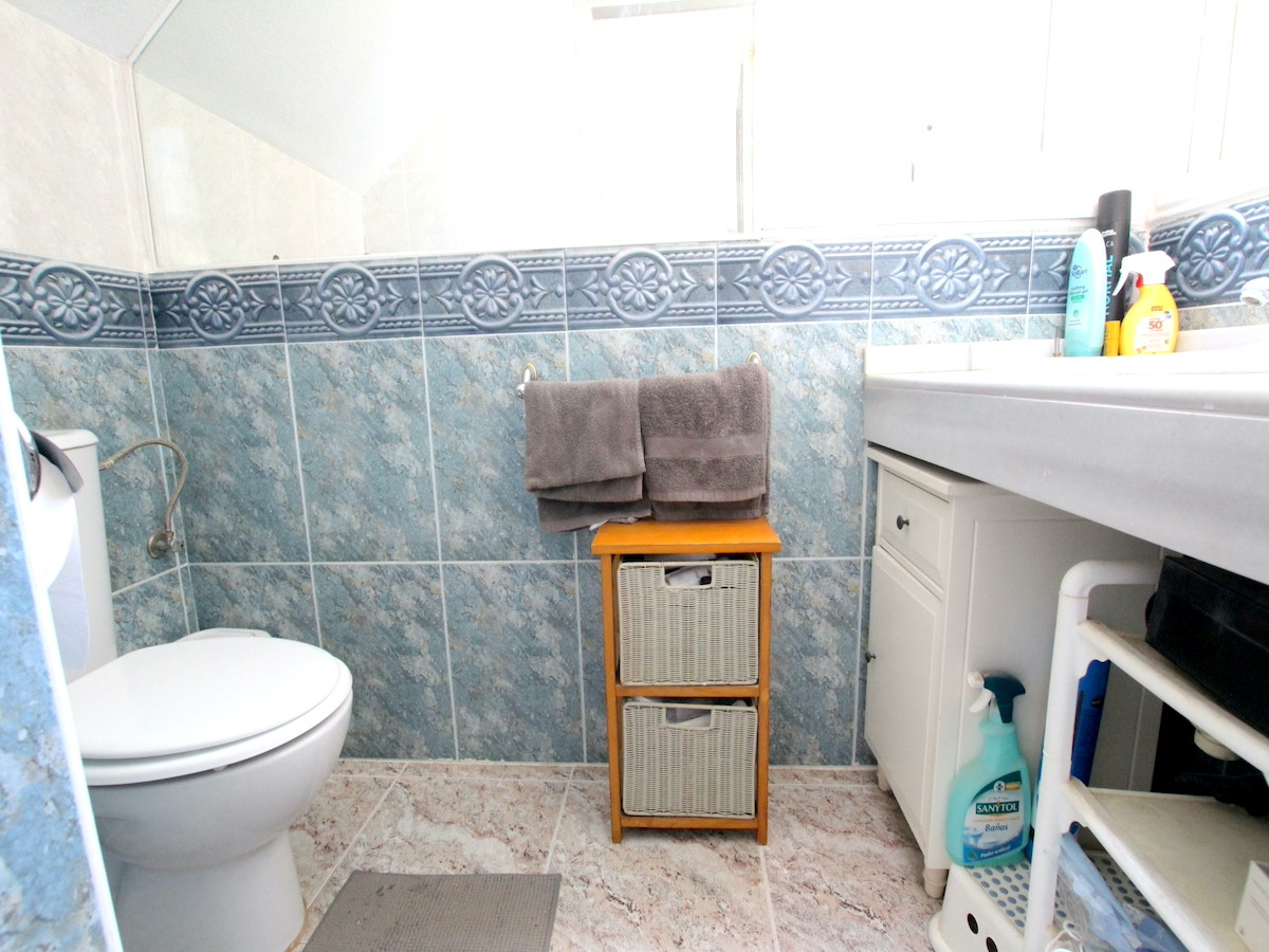 On the ground floor, you will find a spacious lounge-diner fitted with air conditioning, a handy cloakroom with a toilet and hand basin, a double bedroom, and a well-sized kitchen offering plenty of storage and workspace. The cloakroom on this floor offers the possibility of being converted into a full shower room, something which some of the neighbours have done.
