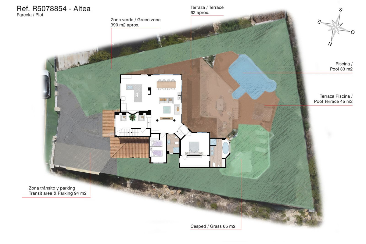 Located in the most exclusive residential area of the Costa Blanca, this villa sits on an elevated plot with private access and 24-hour security. Entry to the property is via a sliding automatic gate, leading to a parking area at the same level as the main entrance of the house.