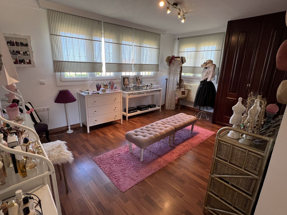 The property is spread over three levels, offering privacy and space for every family member. The first floor includes a luxurious master suite with a private sitting room, dressing room, and en-suite bathroom, as well as additional bedrooms and bathrooms for family or guests.