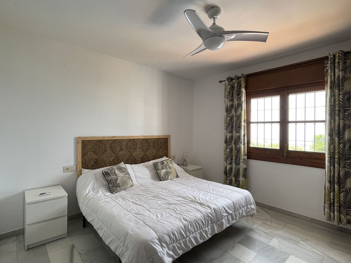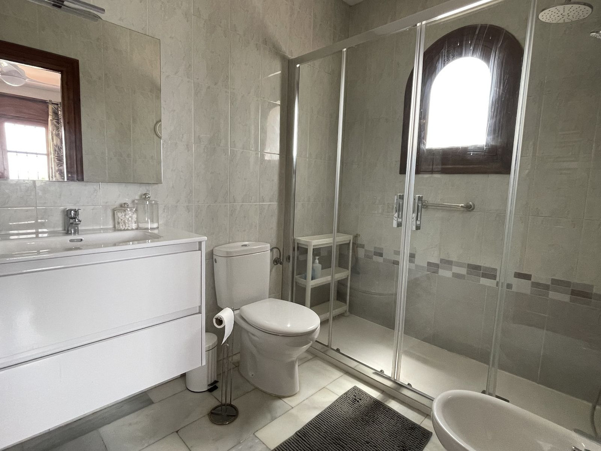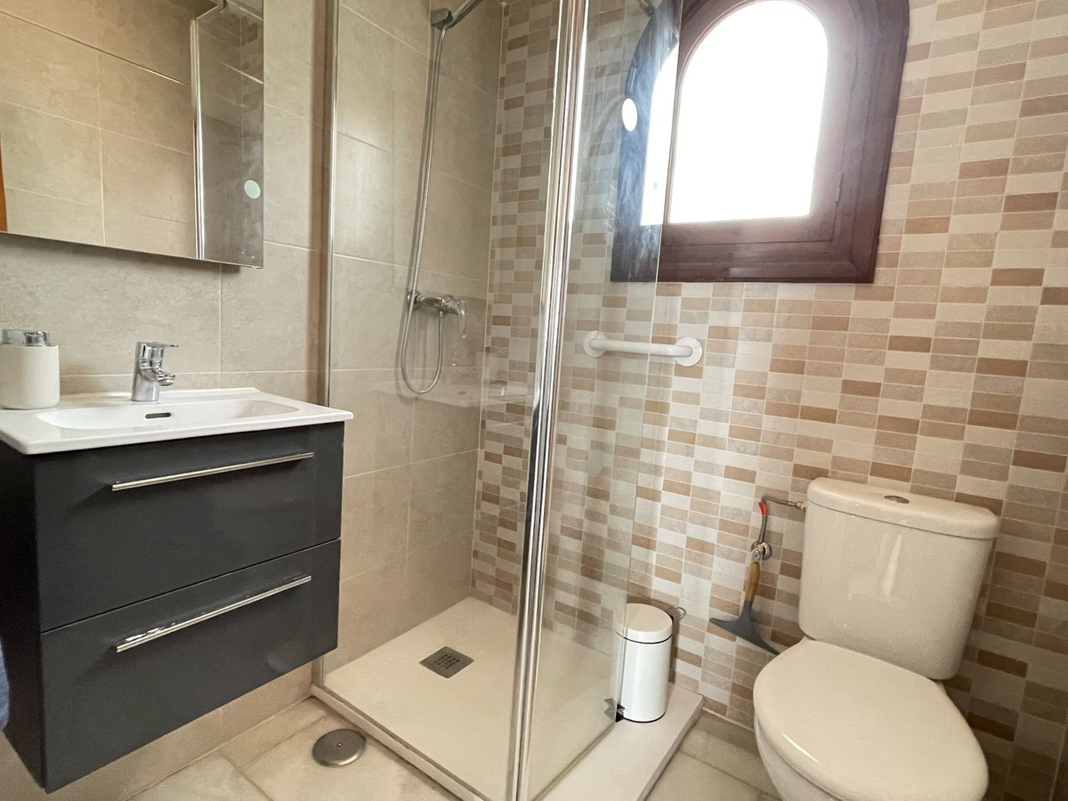 Inside, the home has classic Spanish charm, featuring a spacious lounge with a cosy fireplace, perfect for cooler evenings, and air conditioning for year-round comfort. The layout includes two generously sized bedrooms with fitted wardrobes and two bathrooms, including a master en-suite.