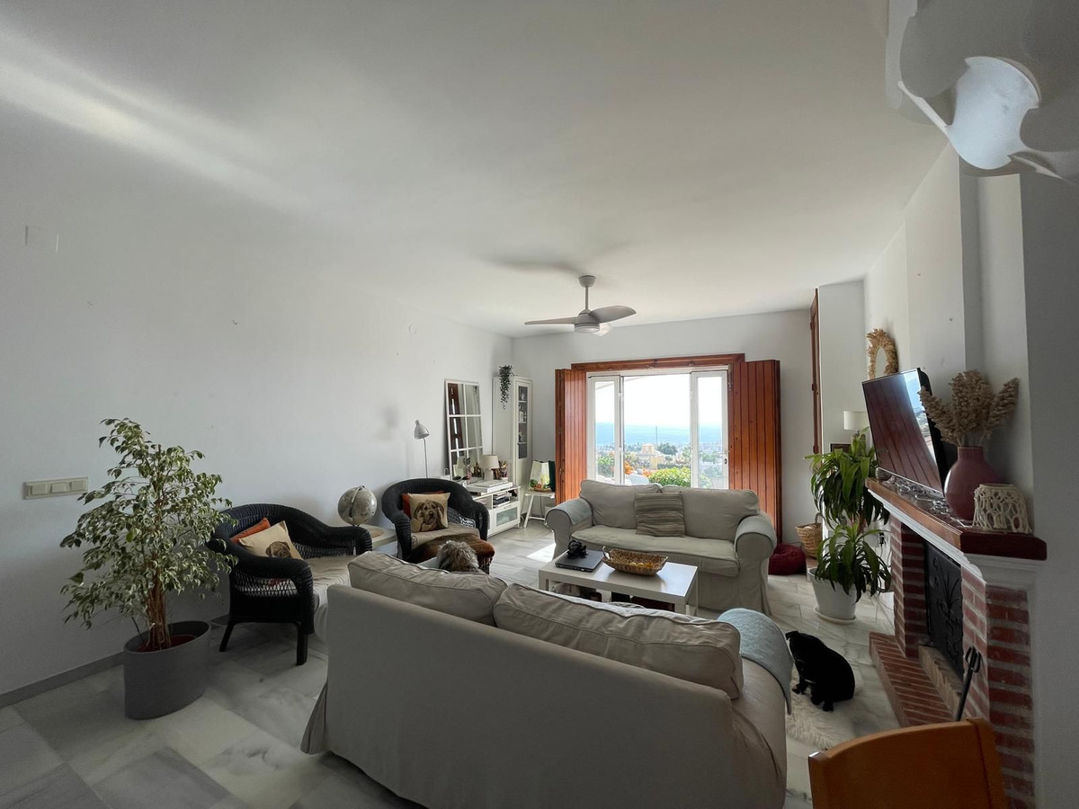 Enjoy complete privacy in this south-facing home, which boasts breathtaking panoramic views across the town and surrounding countryside. Set on a peaceful cul-de-sac, the property benefits from a private gated entrance, a driveway with parking, and no community fees – a true gem in this area.