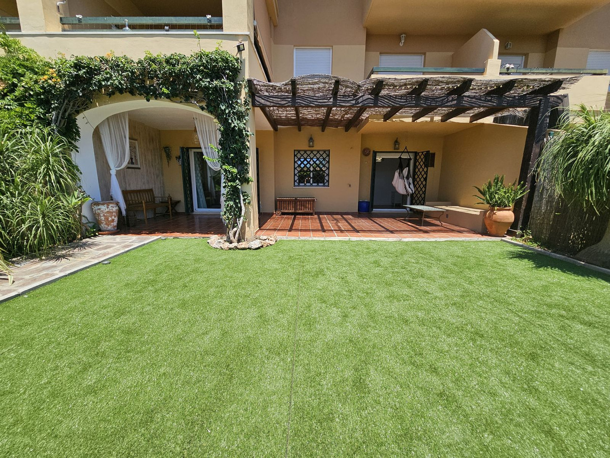 Denne fantastiske lejlighed med 2 soveværelser har det mest fantastiske udendørsområde med overdækket terrasse og en ekstremt stor privat have med grillplads, pergola og direkte adgang til poolen, padelbane og legeplads. Denne ejendom ligger i Selwo-området i Estepona, tæt på Resina Golf, den nye Padel Sports Club og den amerikanske skole. Selve lejligheden ligger i stueetagen med sydvendt beliggenhed, der sikrer sol hele dagen. Der er 2 soveværelser og 2 badeværelser. Soveværelset har et ensuite badeværelse med påklædningsområde samt direkte adgang til den overdækkede terrasse og haven. Køkkenet er blevet udvidet med et butlerkøkken med direkte adgang til en anden terrasse. Stuen/spisestuen er lys med masser af naturligt lys og fører direkte ud til den fantastiske terrasse og haven. Der er varmt og koldt klimaanlæg i hele lejligheden. En underjordisk parkeringsplads er inkluderet i prisen, og en elevator fører dig fra lejlighedsdøren ned til garageniveauet. Der er masser af parkeringspladser på gaden for gæster eller for dem med mere end 1 bil. Området er velholdt og tilbyder en stor swimmingpool, en legeplads og en padelbane til beboerne.