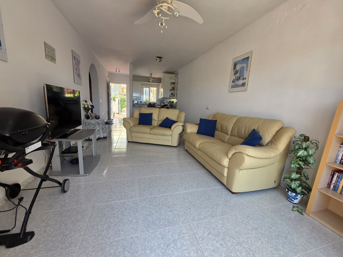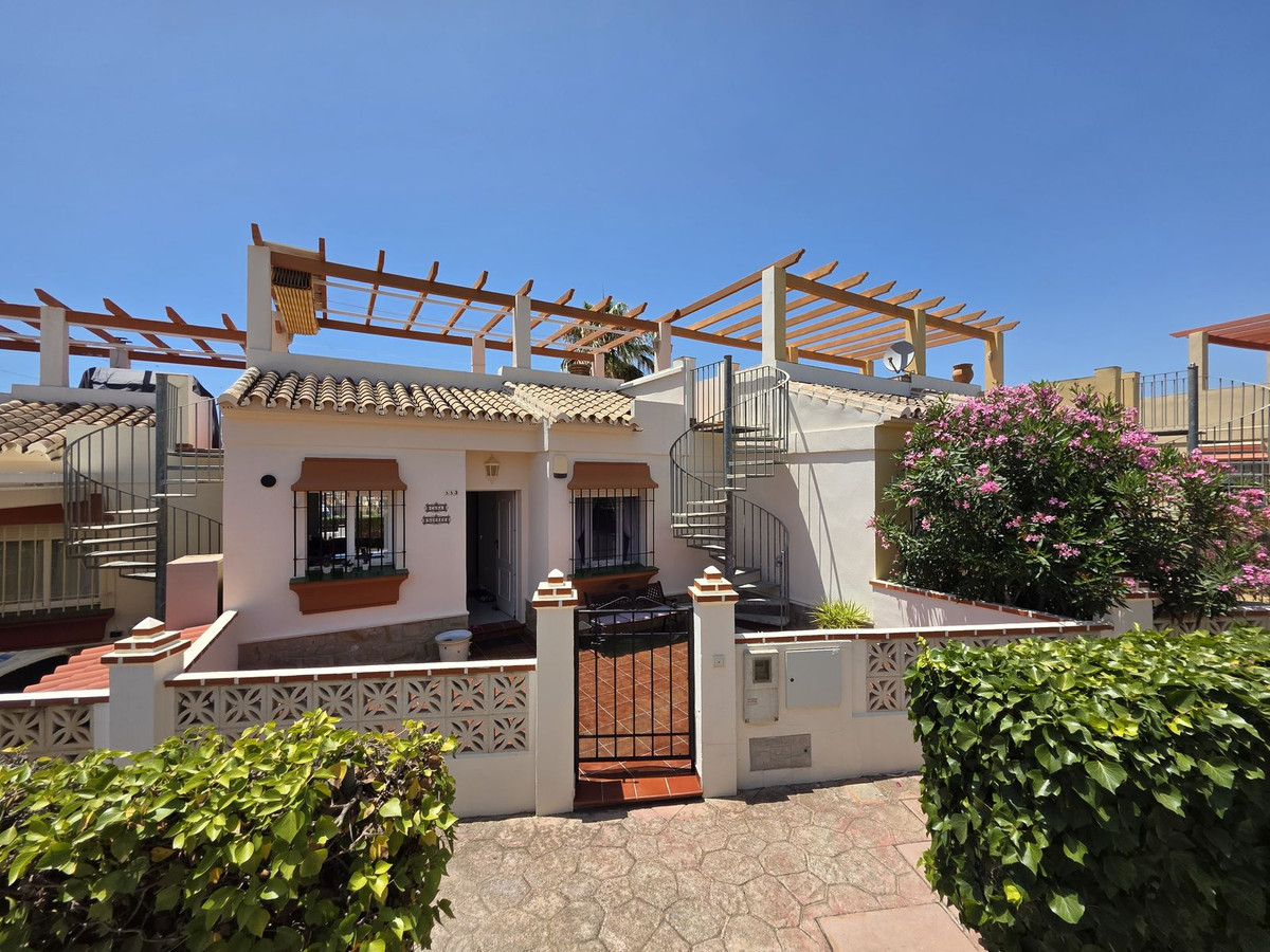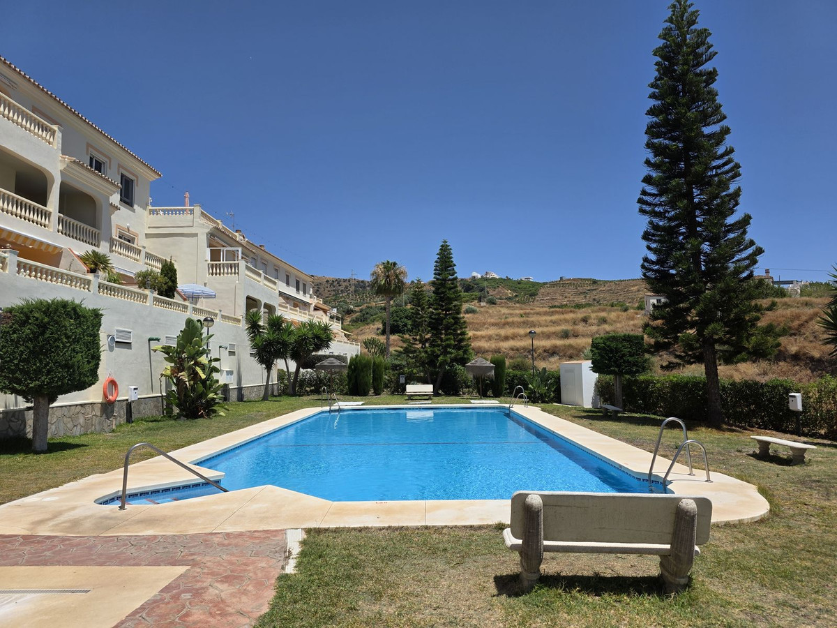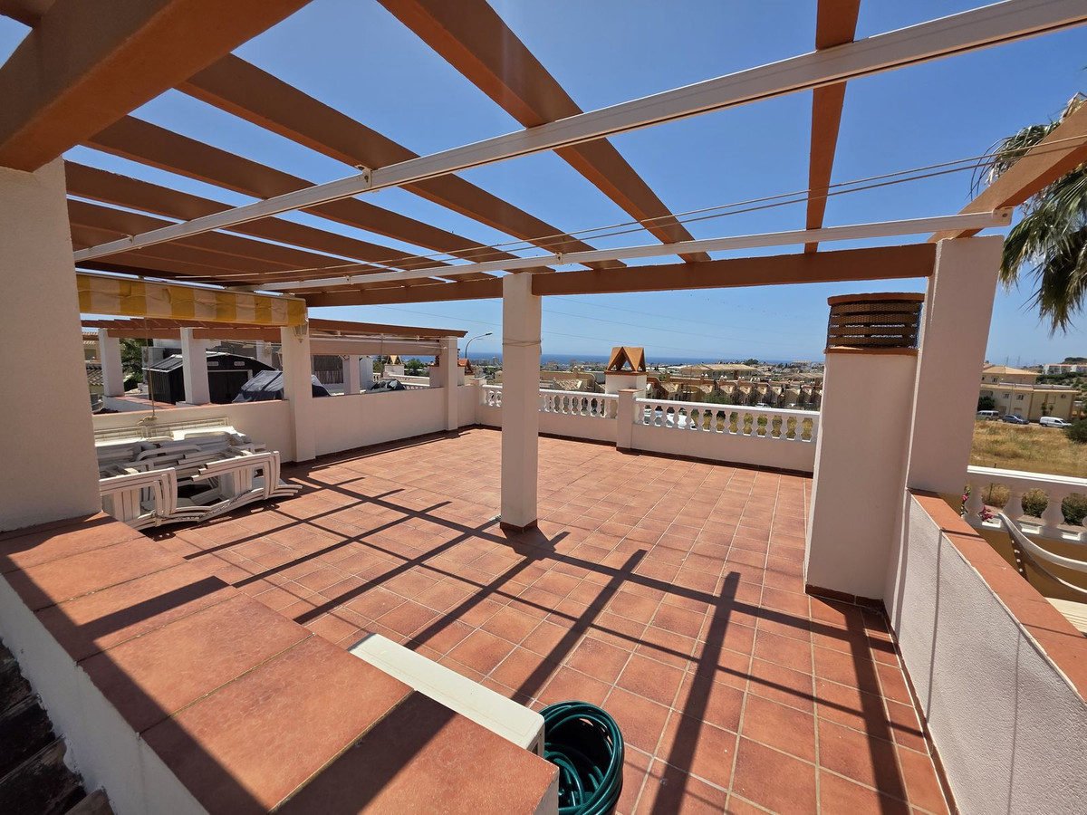 Great location of this townhouse in Torrox Costa, close to the beach and to all amenities. Also a public school is just a few minutes away. The townhouse offers a patio at the entrance, a large terrace at the back and a large roof top terrace with spectacular sea views along the coast. Overall you find two bedrooms, one full bathroom, an open kitchen with all electric appliances, a dining area and a large living room with access to the private terrace and communal garden. Facing south west with views along the coast! This townhouse is part of a community in Torrox Park which offers gardens all around and a large swimming pool area. About 30 minutes from the Málaga airport and city and only 10 minutes to the famous village of Nerja. The m2 are as followed, 70m2 living area, 16m2 terrace, 55m2 roof top terrace and 4m2 staircase!