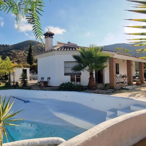 Dette smukt vedligeholdte landsted ligger i de bølgende bakker i Axarquía-regionen og tilbyder fred, privatliv og panoramaudsigt over havet - alt sammen inden for rækkevidde af kysten.