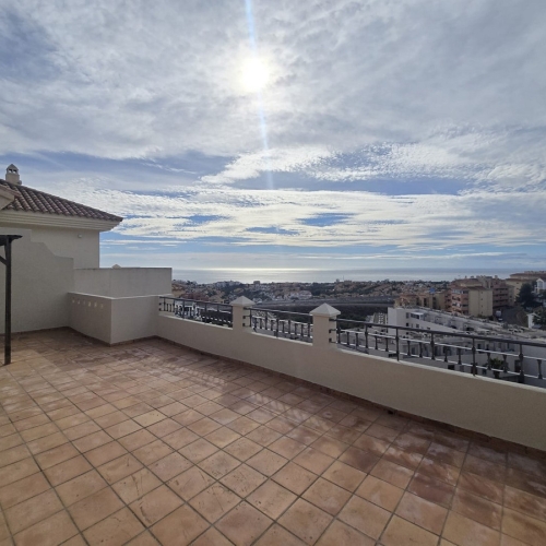 We offer this wonderful penthouse for sale in the coastal town of Mijas, province of Málaga. Located in a gated community with a communal pool and well-maintained landscaped areas, this apartment will make your stay a healthy experience, filling you with vitality and good humor. 17 km from the center of Málaga city, it will provide you with access to all the services and facilities you may need (shops, supermarkets, sports, educational, and health centers, public transportation, hospitality and catering services, government offices, and leisure facilities, such as the Miraflores Golf Course (1.7 km) or Torre Nueva Beach (2 km), among others. This wonderful home is located on a single floor and is located in the penthouse of a residential building. This first-floor apartment, with no elevator, occupies an exclusive wing of the floor, ensuring privacy as it is not shared with neighbors. It has a constructed area of 115 m², distributed among: 3 bedrooms with built-in wardrobes, a separate kitchen, two full bathrooms (one en suite), and a spacious living-dining room with access to a 22 m² terrace. This spacious area, which seems to divide the terrace in two, is located inside the living room. It features large windows and large glass doors, from which you can enjoy the beautiful 360º panoramic sea views in any season, regardless of the weather (it is sunny for most of the day). You can also spend unforgettable moments with your loved ones enjoying the beneficial Mediterranean climate on the terrace on summer nights.