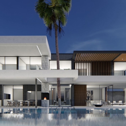 Villa Three, located in the distinguished La Resina Golf community within Estepona's flourishing residential zone, is an architectural statement combining contemporary sophistication and practical luxury. Designed by the acclaimed Francisco Martínez Galván, this four-level residence encompasses an impressive total built area of 674 square meters. The interior offers 503 square meters of meticulously crafted living space, while an additional 171 square meters of terrace ensures a seamless transition between indoor elegance and open-air enjoyment.