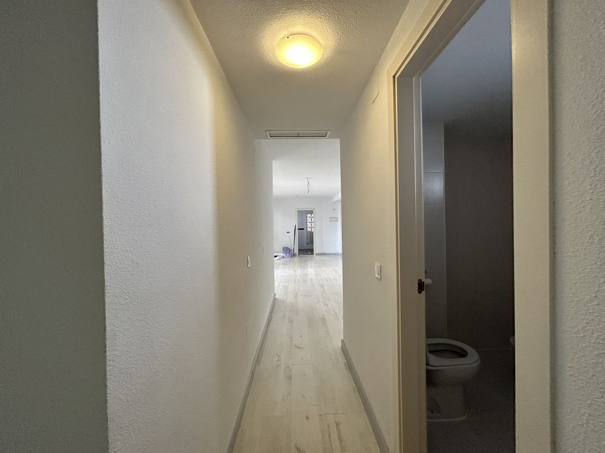Upon entering, you are welcomed by a spacious and bright living-dining room with direct access to a private terrace—perfect for enjoying breakfast in the sun or relaxing at sunset. The floating wooden flooring covers the original elegant marble, giving you the option to choose your preferred finish.