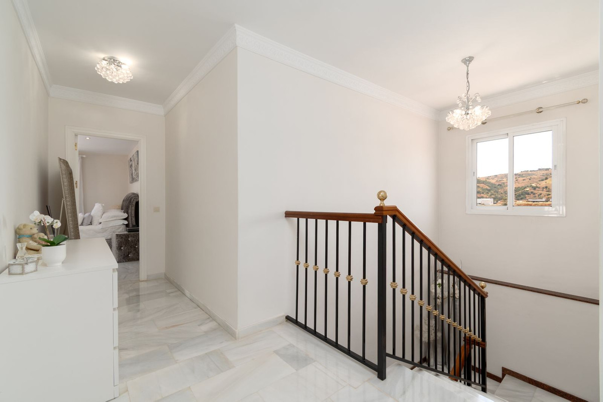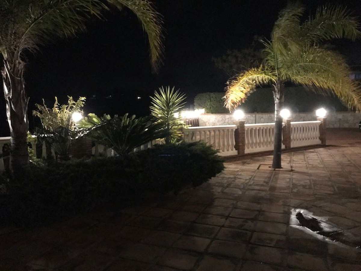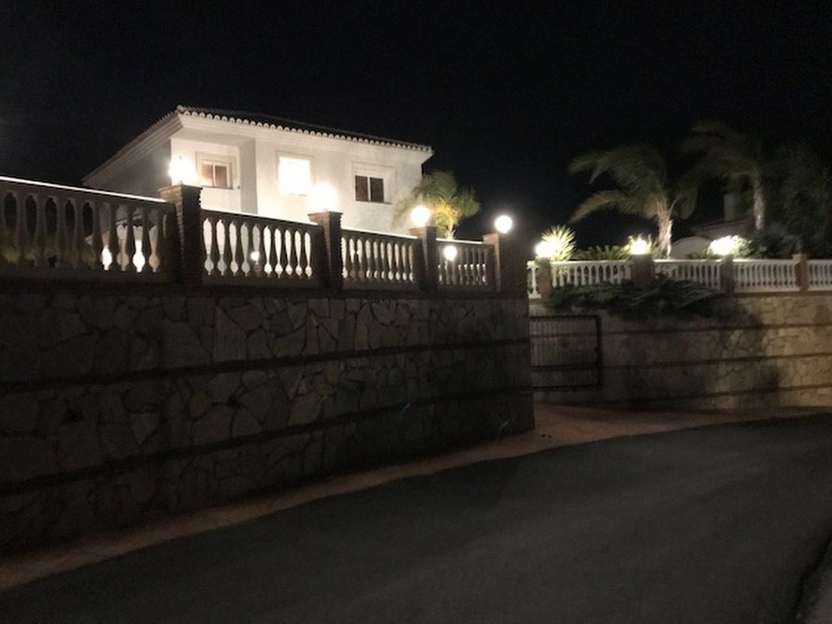 Just 4 minutes by car (2.5 km) from the vibrant centre of La Cala de Mijas, this elegant villa offers 378 m² of built area on a generous 2,559 m² plot, divided into two parts.