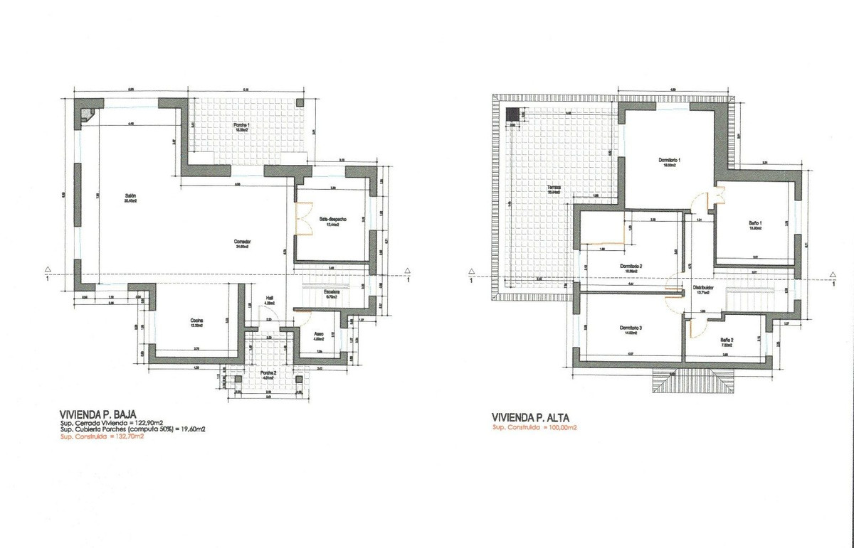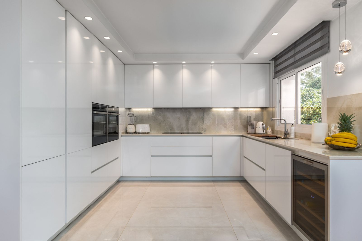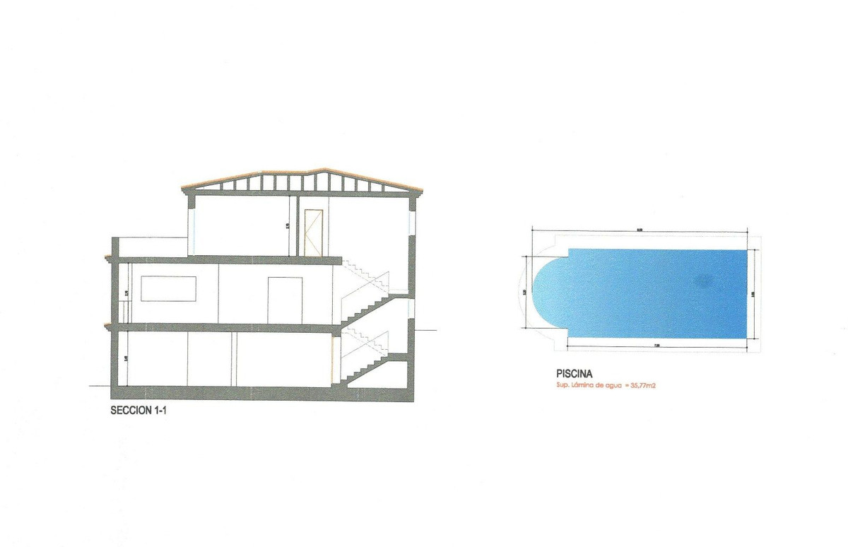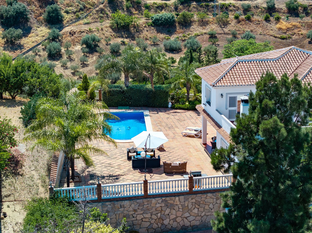 Just 4 minutes by car (2.5 km) from the vibrant centre of La Cala de Mijas, this elegant villa offers 378 m² of built area on a generous 2,559 m² plot, divided into two parts.