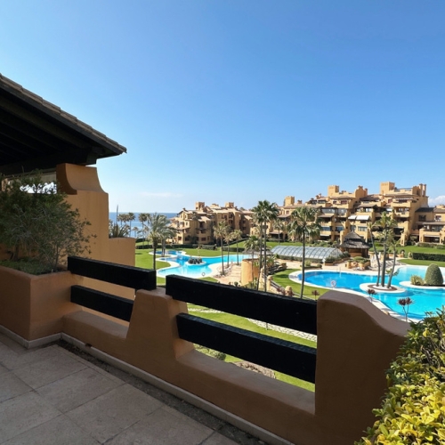 Beautiful duplex penthouse in the prestigious Bahia Dorada urbanisation in Estepona. This urbanization very close to the marina of Estepona and the centre of the beautiful Mediterranean town, has 9 communal swimming pools, some of which are located on the beachfront and tennis court.