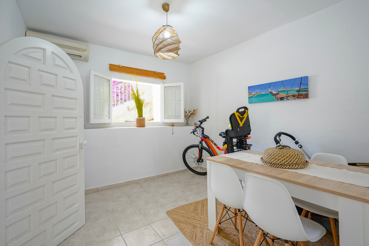 Discover this charming, renovated villa in traditional style, located in the quiet and green urbanization of Montemar in Benissa. Only 2 kilometers away from the beautiful beach of La Fustera and surrounded by natural areas, this property offers ultimate privacy, tranquility and a pleasant Mediterranean lifestyle. The villa has a total built area of 420 m2 and a usable area of 219 m2, distributed over two floors. Through the pedestrian entrance you reach the upper floor where the main house is located. Here you enjoy a spacious, bright living room with large windows and views of the surrounding nature. Adjacent you will find a dining room and a fully equipped open kitchen. Furthermore, this floor has two comfortable double bedrooms that share a bathroom. Outside you will find an attractive barbecue area, ideal for enjoying summer evenings with family or friends. The ground floor is arranged as a spacious and independent guest house, consisting of a lounge, a dining room, a kitchen, two bedrooms and two bathrooms, one of which was recently renovated. This floor also features an east-facing balcony and two spacious terraces, one on the north side and one on the south side. A separate laundry room, strategically located between the two floors, provides additional convenience and is accessible to both residents and guests, ideal for rentals. Below the guest house are two practical storage rooms. Situated lower on the plot is the recently renovated swimming pool with a spacious sun terrace, completely surrounded by mature trees that ensure optimal privacy. The municipality has given permission to remove some trees to create additional sunlight on the terrace, if desired. The villa also has a carport for one car, air conditioning, electric radiators, a garden with fruit trees and automatic irrigation. The location is excellent: Only 7 minutes' drive from idyllic coves such as Cala Baladrar and Playa La Fustera and only 15 minutes from both the charming coastal village of Moraira and the lively resort town of Calpe. This property is perfectly suited as a permanent residence for several family members, as a vacation home, or as an investment property for rental thanks to its division into two independent floors. Do not hesitate any longer and request your visit now!