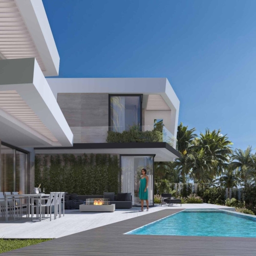 Denne helt nye fritliggende chalet kombinerer moderne design, rummelighed og højkvalitetsfinish i et af de mest rolige og eksklusive områder i Mijas.