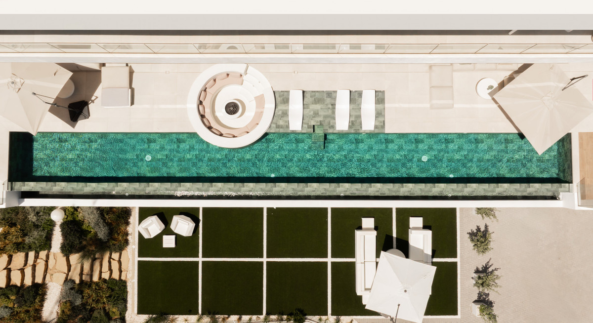 The spectacular basement level enjoys rare sea views and houses a full private wellness retreat, including a 24-meter heated indoor pool, sauna, a cold plunge pool, gym, and stylish bar. It also features a 16-seat cinema, bodega, second living room, and laundry area—ideal for both relaxation and entertaining.