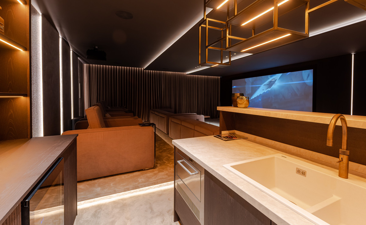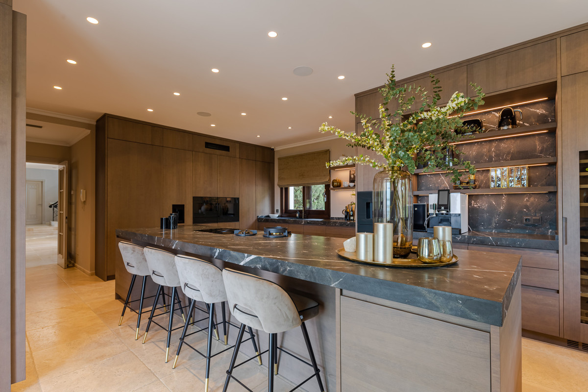 On the lower level of this villa you will find the magnificent cinema room with its elegant bar, a fully equipped gym, sauna, private office, two further guest bedrooms with en-suite bathrooms and finally the garage for at least 4 cars. These are just some of the features that this fabulous family home has to offer so whether you're looking to relax and enjoy the stunning views or indulge in luxurious amenities, this villa has something for everyone.