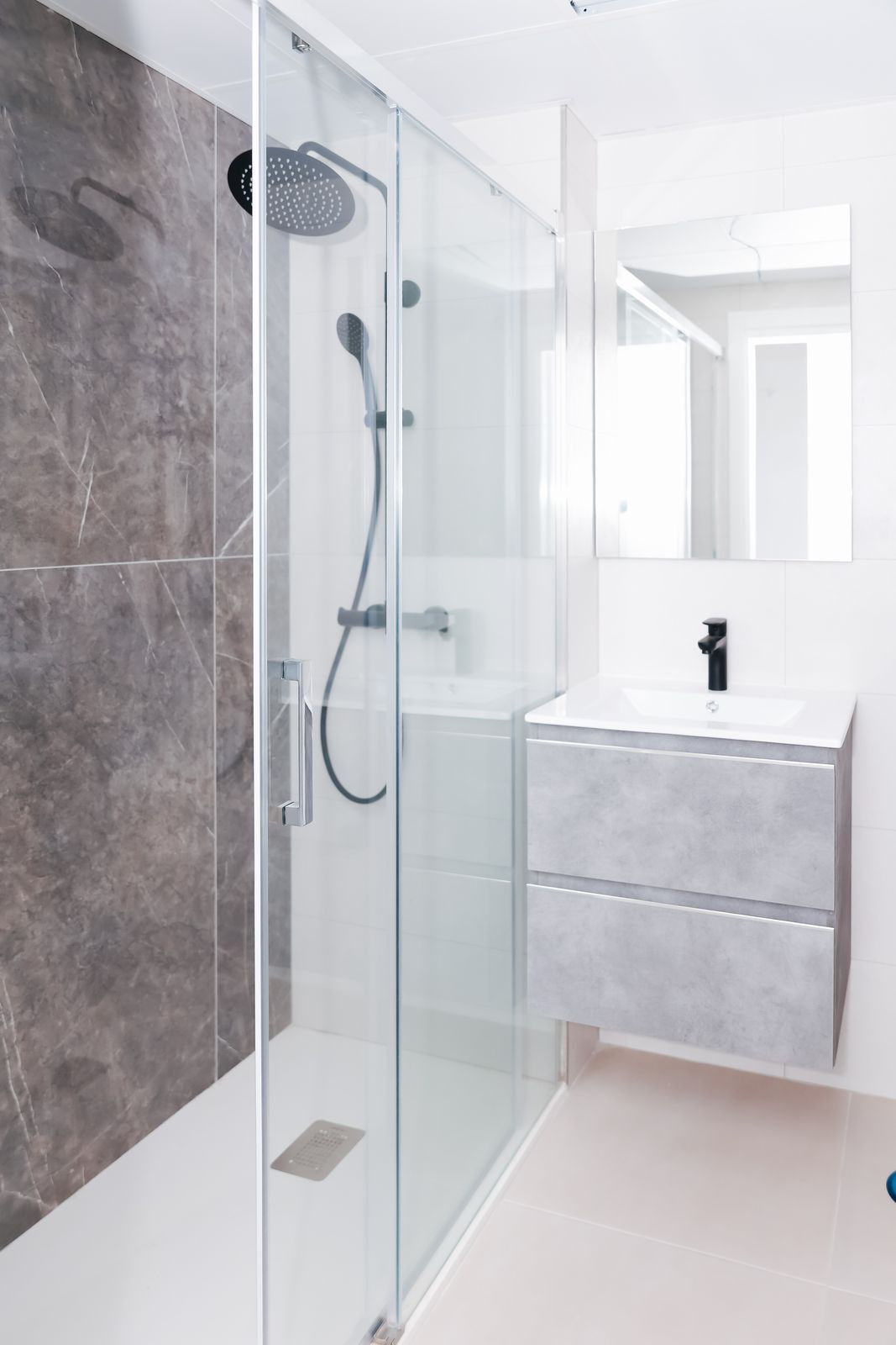 Bathroom units with mirrors and glass shower screens