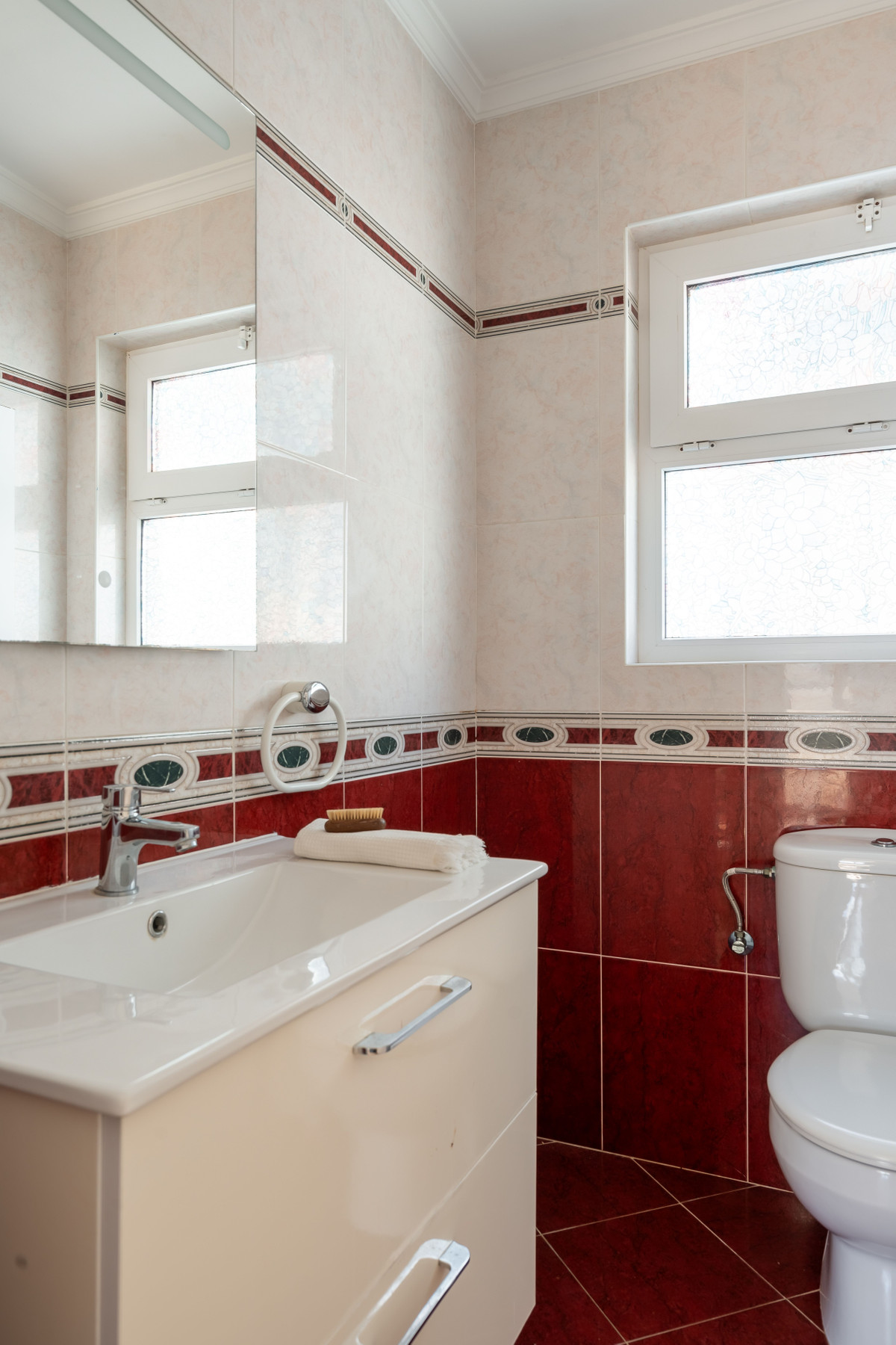 The entrance level welcomes you with a bright open floor plan, featuring a modern newly renovated kitchen, a spacious living area, a guest toilet, and a sun drenched terrace. A stylish bedroom on this level adds convenience and flexibility.