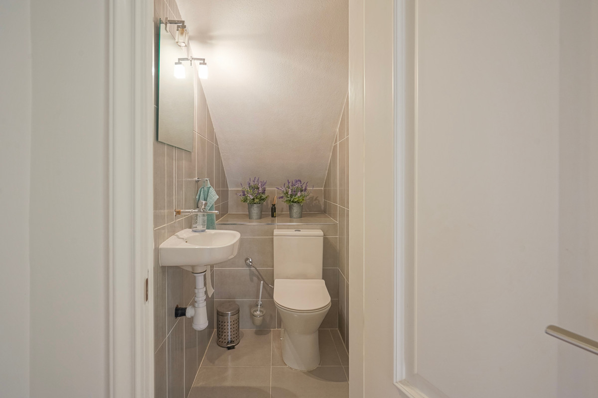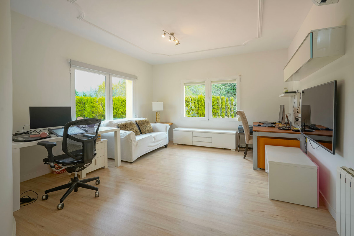 In the north wing of the house you will find an impressive, fully equipped kitchen with cooking island and an adjoining pantry. From the kitchen, there is direct access to the inner courtyard. Here you will also find a practical laundry room, a technical room and a multifunctional room, currently used as a home office but equally suitable as a gym, yoga studio or hobby room.