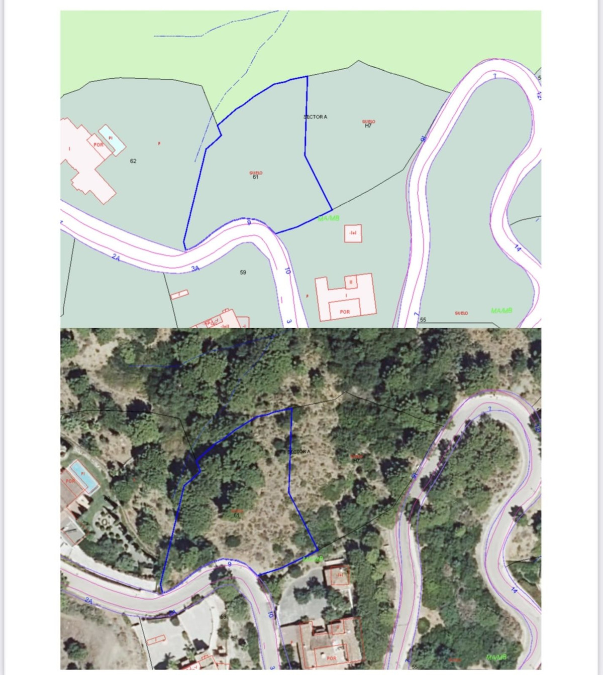 Two neighboring plots are for sale: the first measuring 2,237.5 m² priced at €349,000, and the second 2,053 m² priced at €279,000. Both are located in the exclusive, gated, and 24-hour secured community of Monte Mayor, in the municipality of Benahavís.