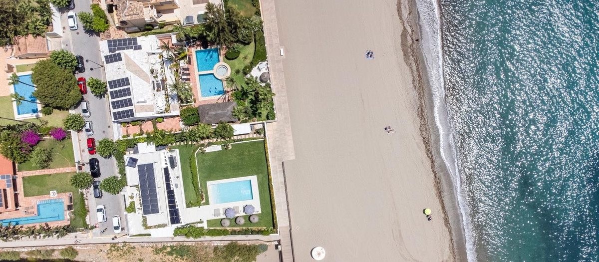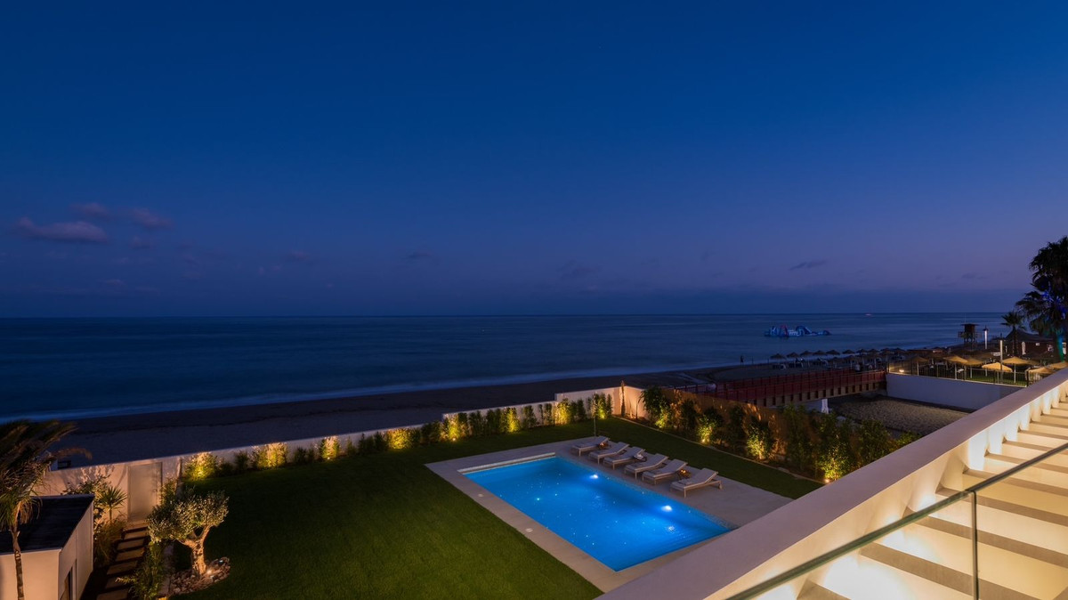 Spectacular beachfront villa with panoramic views of the Mediterranean and direct access to the beach.