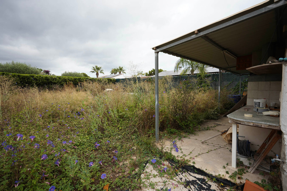 Currently, the plot contains a single-storey villa with a built-up area of 152 m². The property features a living room with open kitchen, a second living-dining room with closed kitchen, three bedrooms, two bathrooms and a patio with a storage room.