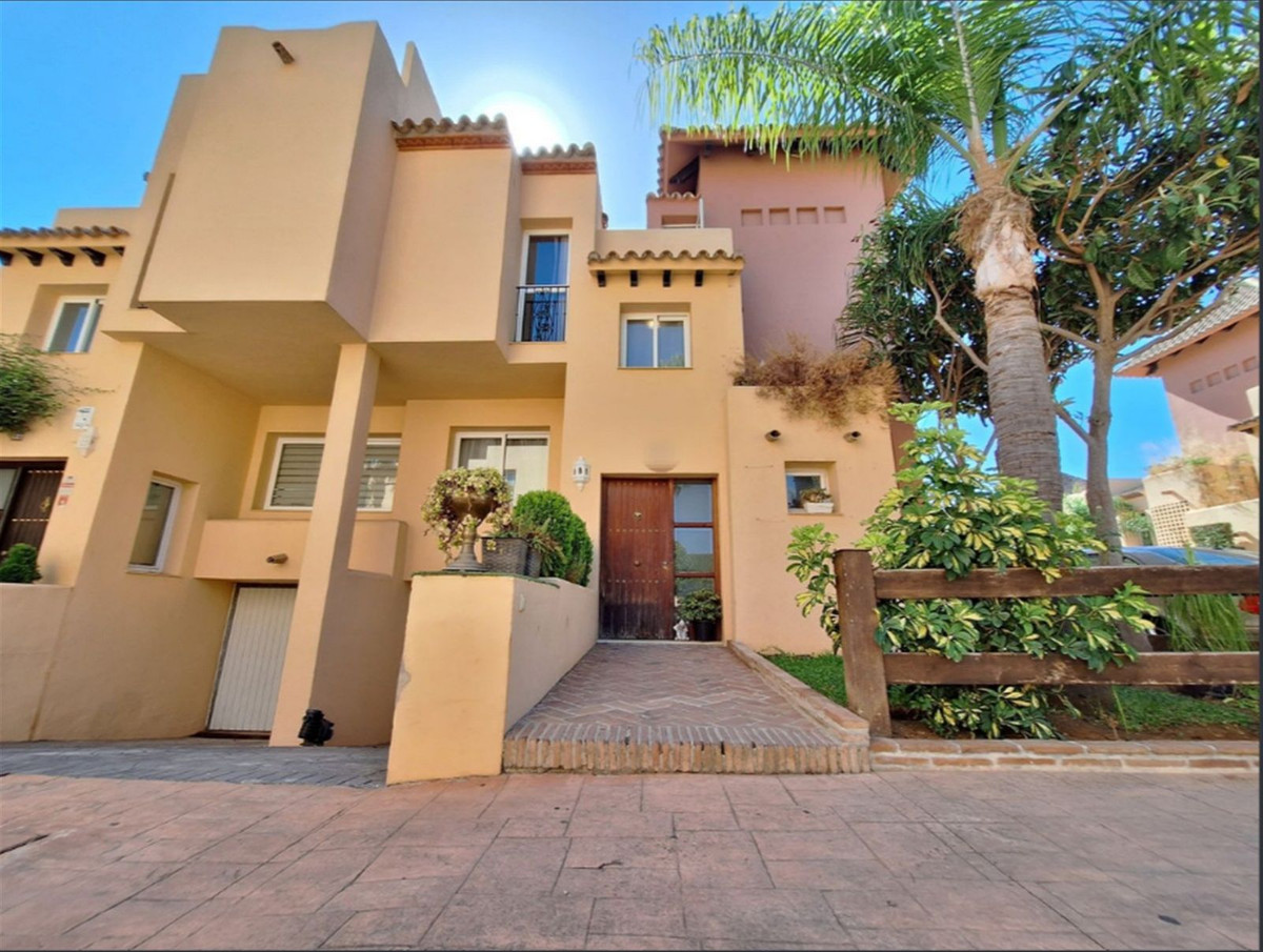 Oplev denne elegante halvt tilboende villa med 4 soveværelser og 5 badeværelser, ideelt beliggende i et af Marbellas mest eftertragtede områder - Nueva Andalucía. Beliggende i et sikkert, lukket område, tilbyder denne ejendom den perfekte blanding af komfort, bekvemmelighed og middelhavslivsstil, kun få minutter fra den verdensberømte Puerto Banús, Marbellas centrum og San Pedro de Alcántara.