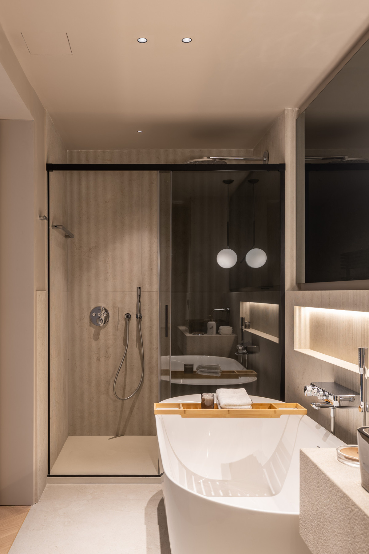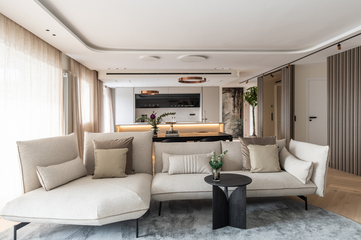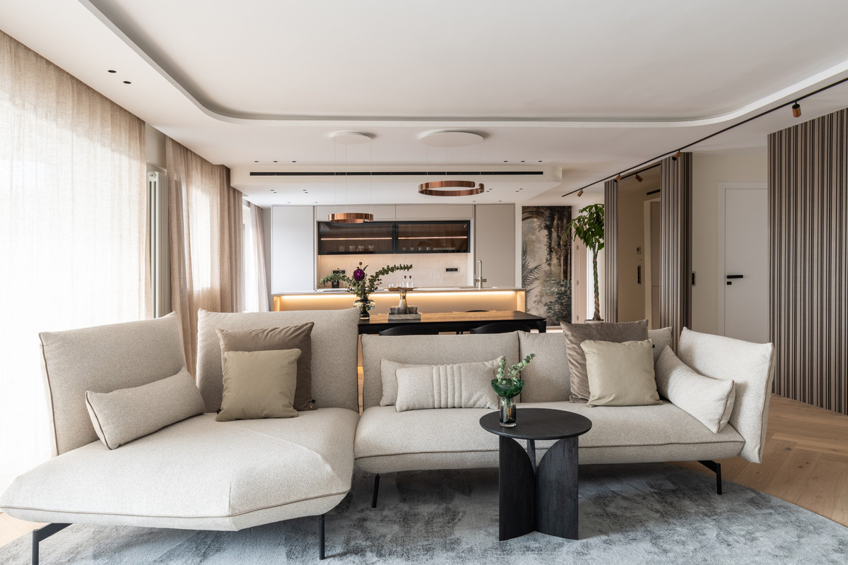 The apartment was recently renovated to an exceptional standard, reflecting a commitment to contemporary luxury and meticulous craftsmanship. Notable details include aluminum CORTIZO Cor Vision carpentry for sleek frames and durability, a Mitsubishi ducted air conditioning system for precise climate control, and designer radiators connected to a gas boiler for efficient heating. The entire home is illuminated with high-end OCCHIO and FLOS lighting, harmonizing sophistication and comfort. Bathrooms are finished with large-format designer ceramics by Living Ceramics, adding a clean, modern aesthetic.
