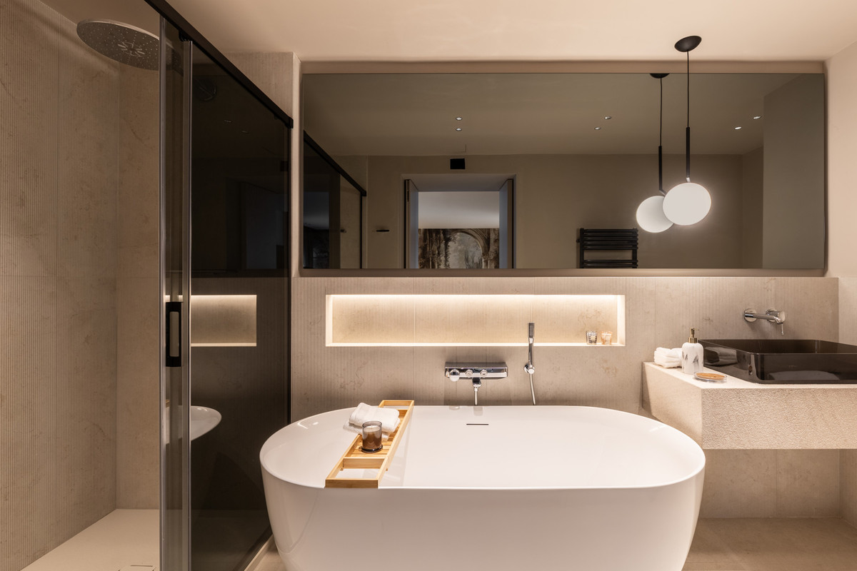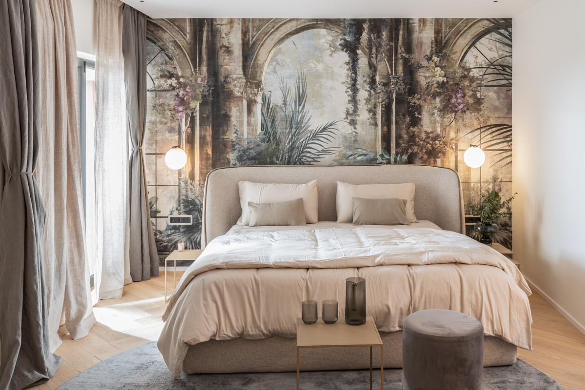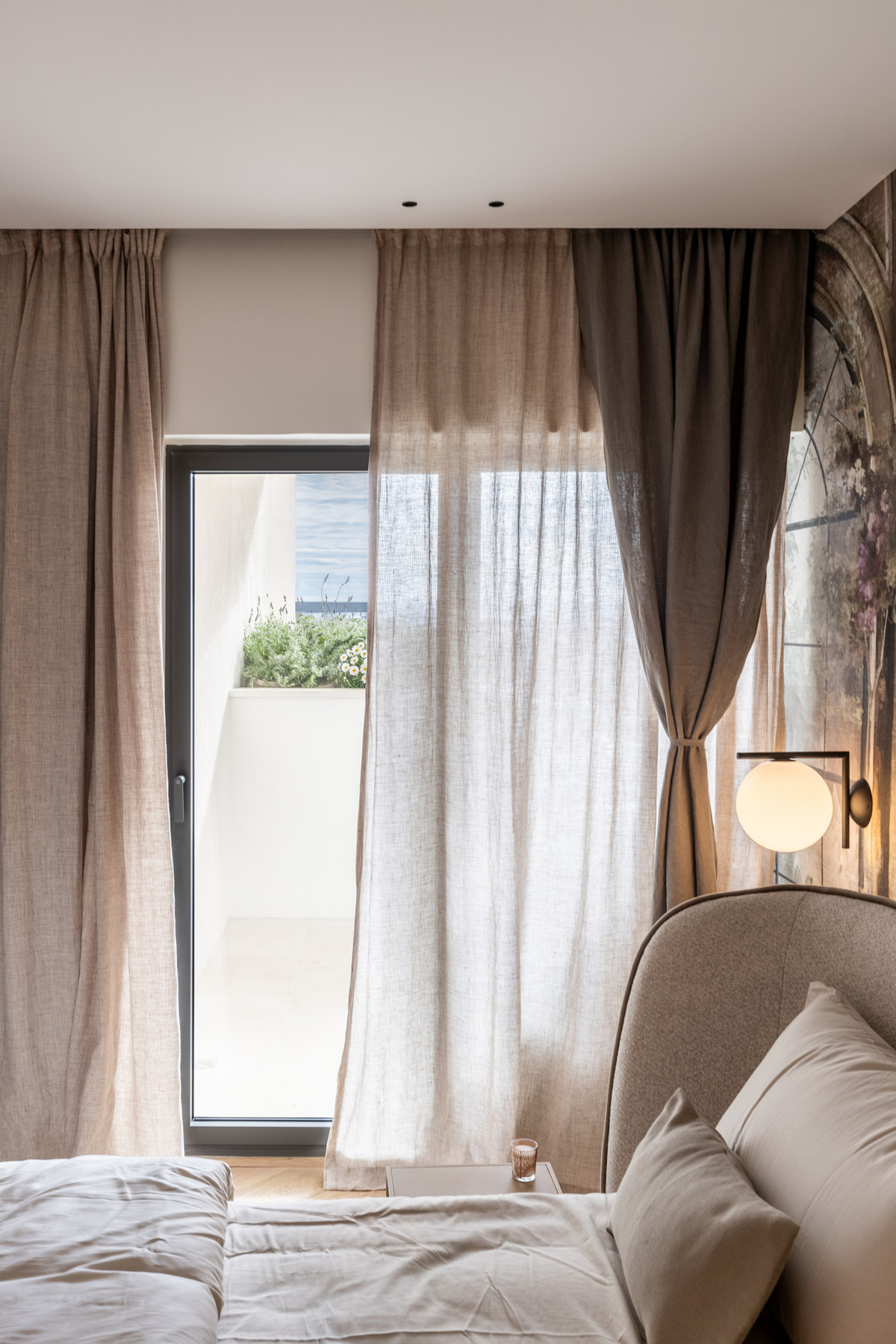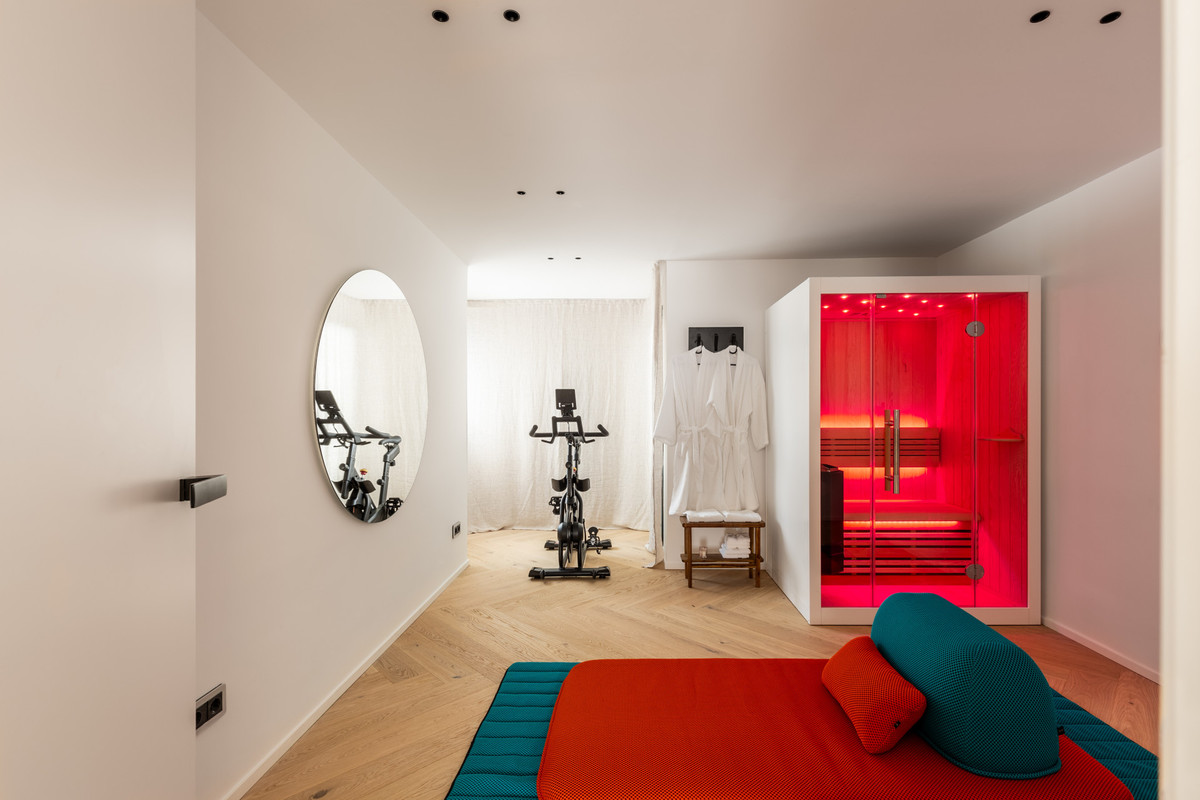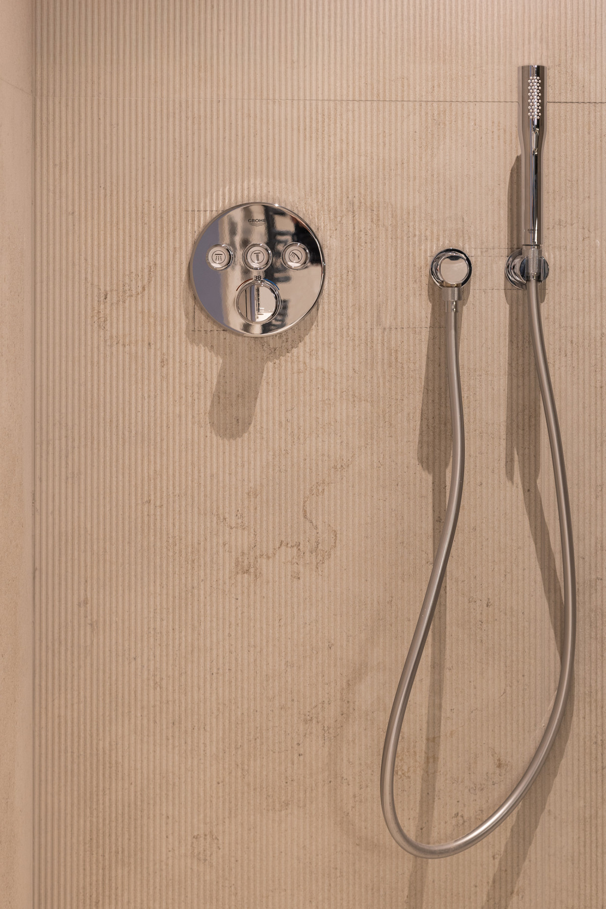 Throughout the main areas, Austrian XL Admonter parquet floors laid in an elegant herringbone pattern add warmth and timeless style. Terrace surfaces and custom sinks are crafted from durable, refined Grey Zarzi stone. Additional thoughtful touches include high-quality Gira control systems, Grohe Rainshower taps, and a Grohe Blue filtered water system in the kitchen, providing both luxury and eco-friendly benefits.