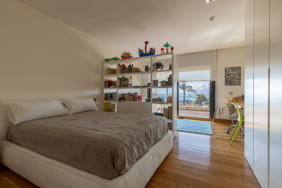 This luxury designer villa is situated in an exclusive and private area of Parque Clavero and offers, without a doubt, the best views of the whole Bay of Malaga. The property is set on a massive plot of 5023 m2 and is distributed over 4 levels connected by a lift. Stepping into the house you are immediately struck by its flawless design, well-thought-out features and open spaces that blend perfectly with the incredible panoramic sea views on the horizon.