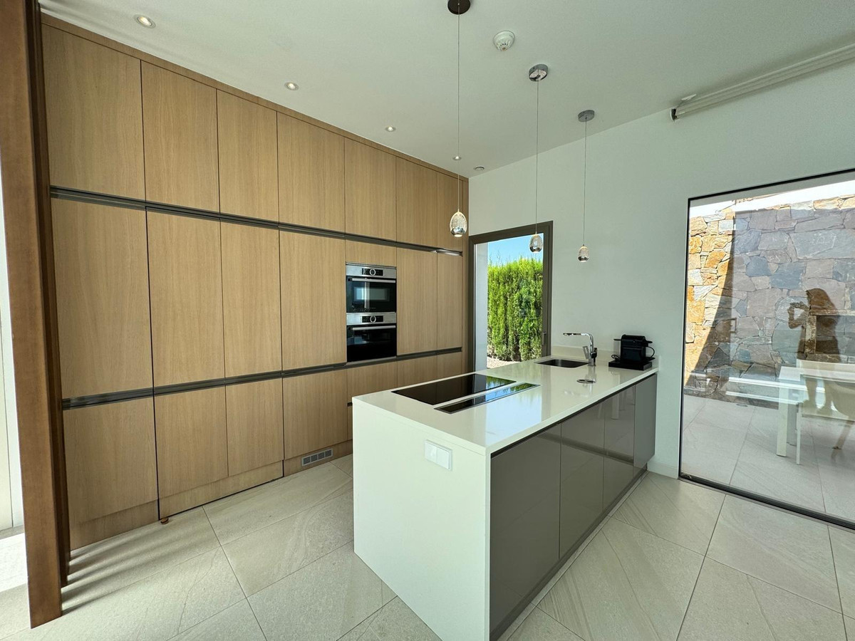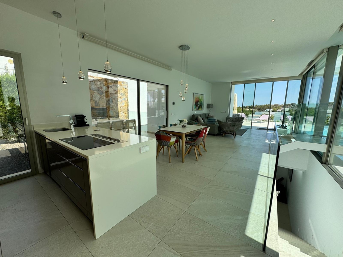 Discover this unique luxury villa situated in the heart of the prestigious Las Colinas Golf & Country Club, within the sought-after residential community of Limonero. With its modern architecture, high-end finishes, and stunning views over the golf course and Mediterranean Sea, this property embodies the best of Spanish lifestyle.???? Key Features:Direct access to an 18-hole golf course ranked among Spain's finest.Private infinity pool with elegant night lighting.Panoramic view overlooking the green and sea without facing other properties.2 private parking spaces and a landscaped garden at the front.Sunny terraces; potential outdoor kitchen; outdoor shower.✨ Premium Interior:Fully equipped designer kitchen: convection oven, dishwasher, microwave; ceramic cooktop; integrated extractor hood; premium refrigerator. Spacious living room filled with light featuring large sliding windows leading to terrace. vMain suite located on ground floor with direct access to pool;glass walkway leading towards primary bedroom fitted with built-in wardrobes.;pPrivate little terrace ; full bathroom complete with jacuzzi or Italian cabin.