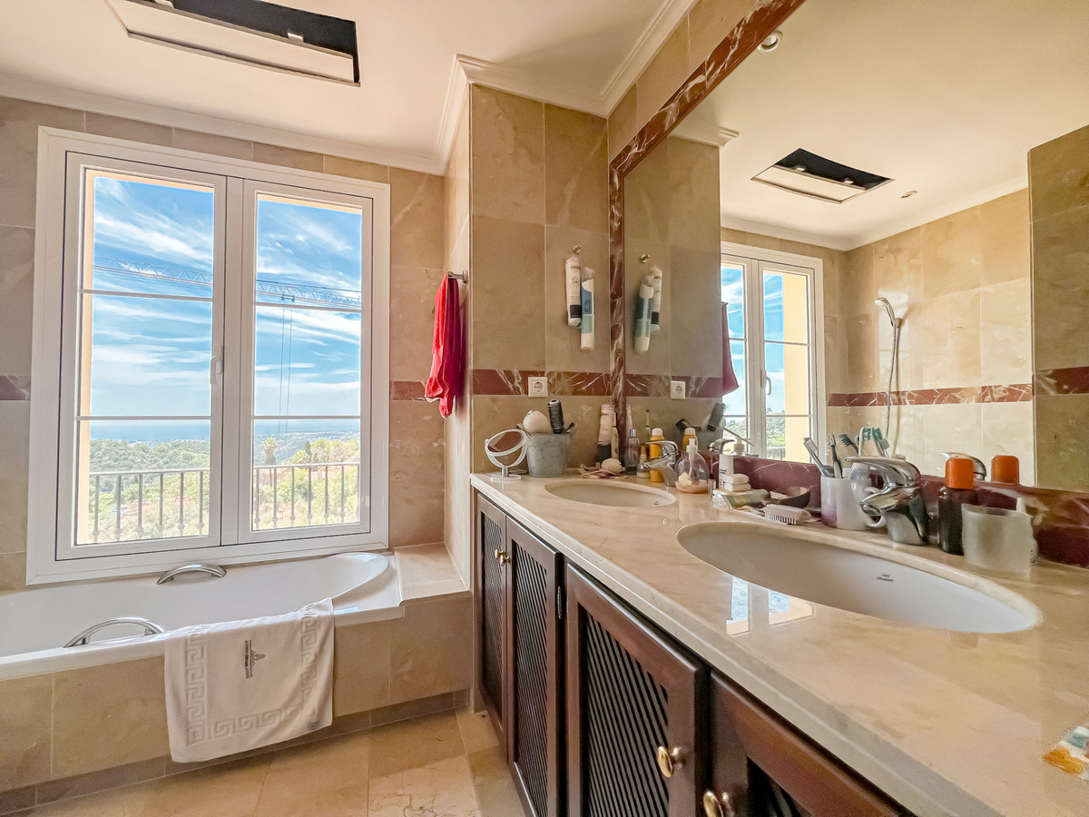 Denne villa ligger i det eksklusive gated samfund i Sierra Blanca Country Club, blot en kort køretur fra Marbella, og byder på en betagende panoramaudsigt over Lake Istán, Middelhavet og de omkringliggende bjerge. Dette overnatningssted ligger i en rolig natur, men bekvemt tæt på Marbellas bekvemmeligheder.