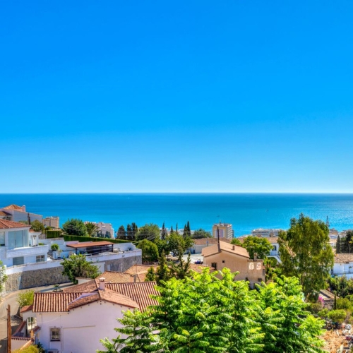 The apartment welcomes us with an entrance hall-corridor on the first floor, which serves as the distribution hub. As we walk down the corridor, we find a guest toilet, two bedrooms facing an interior patio, a full bathroom with a bathtub, and an open-plan living room and kitchen with large windows that open onto a beautiful terrace with sea views and great height, since it's a penthouse. The third bedroom is the master bedroom, located upstairs, featuring an en-suite bathroom and a terrace with sea views. The bedrooms are equipped with built-in wardrobes.