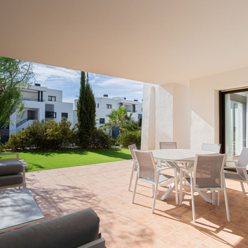Lejligheden er beliggende i et sikkert, lukket område ved stranden og vender mod syd, hvilket sikrer sol hele dagen. Med promenaden og stranden lige foran huset behøver du ikke en pool - havet ligger bogstaveligt talt for dine fødder.