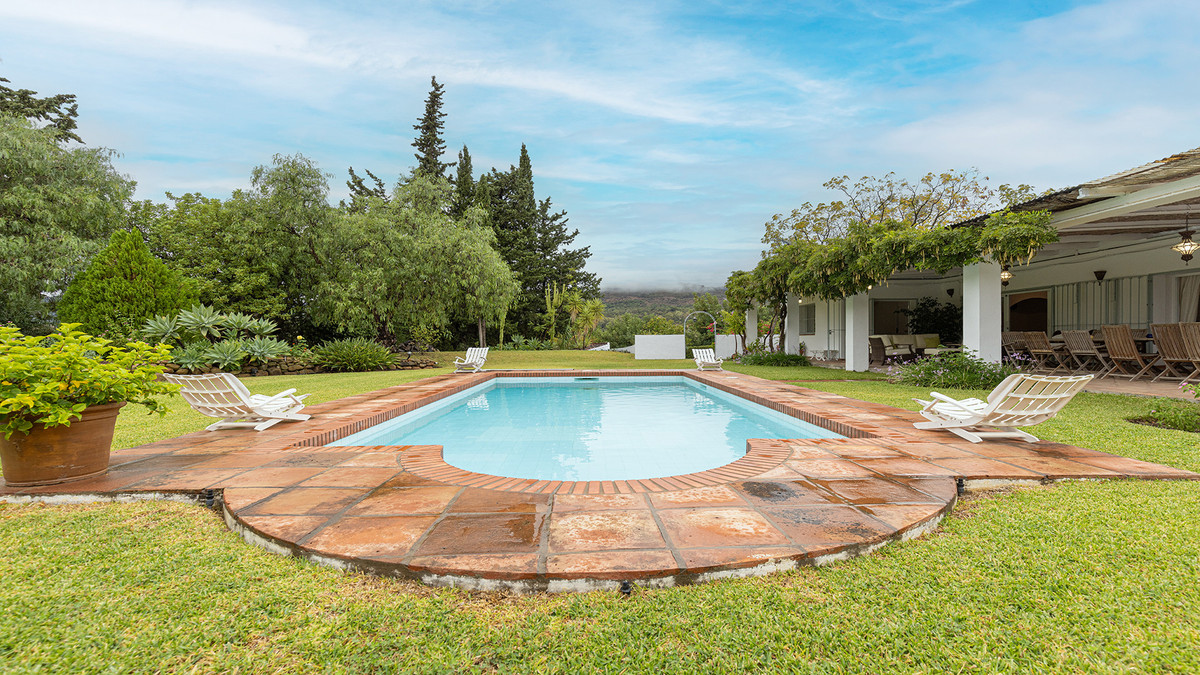 The covered terrace has a large dining area - ideal for al fresco dining and a comfortable relax area with sofas - sit back and enjoy the privacy and peacefulness of this setting. The terrace follows our to the private pool which is set within a beautiful lawn. The surrounding land is stunning filled with fruit trees such as lemon, grapefruit, orange, and avocado. A BBQ area adds to the outdoor entertainment options. Stairs from the covered terrace lead to a solarium terrace, providing an additional outdoor space for relaxing in the peaceful surroundings.