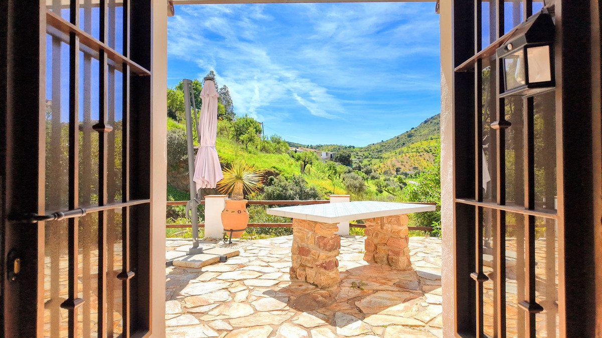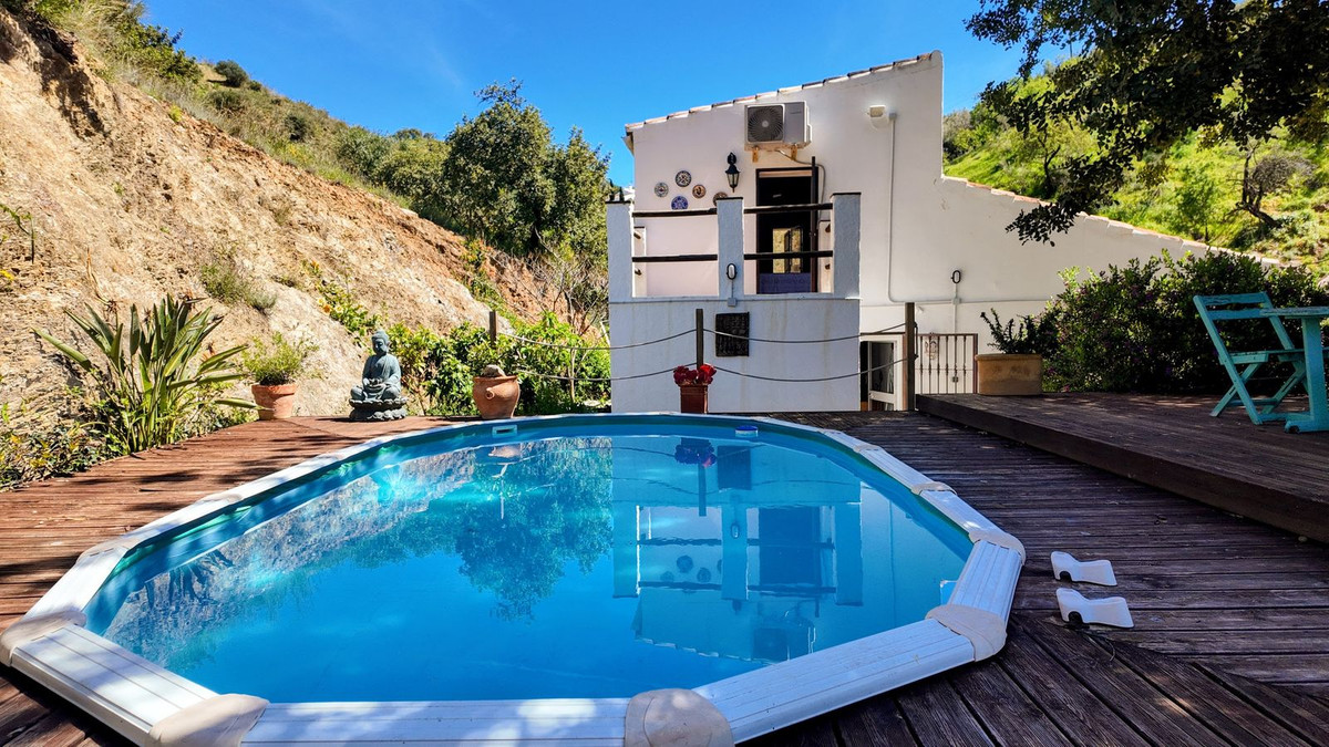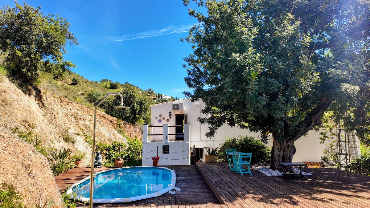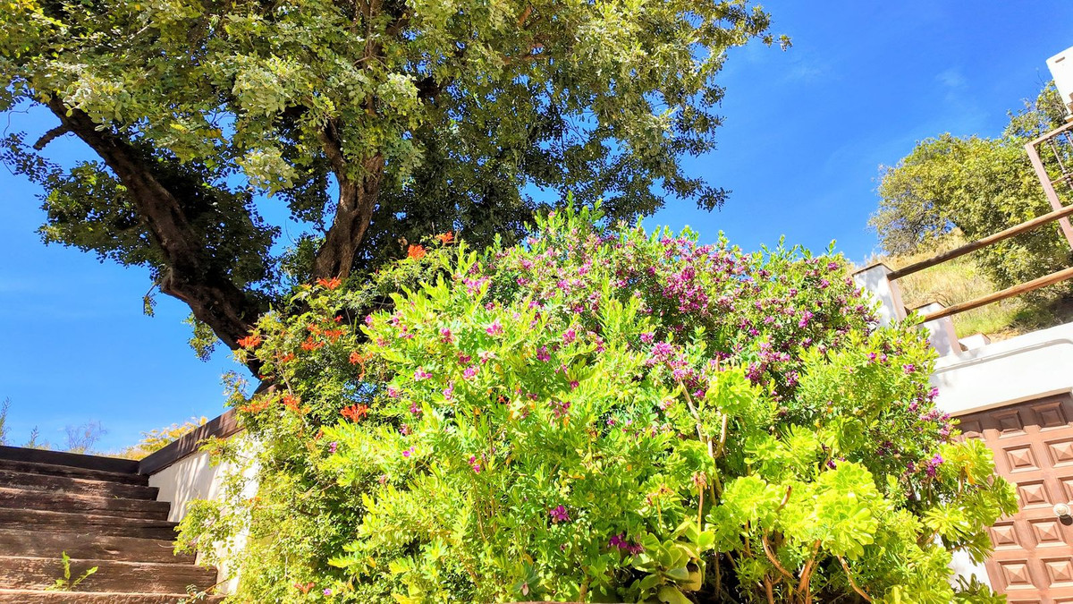 Der er en dør til den anden side af haven, hvor poolen er placeret