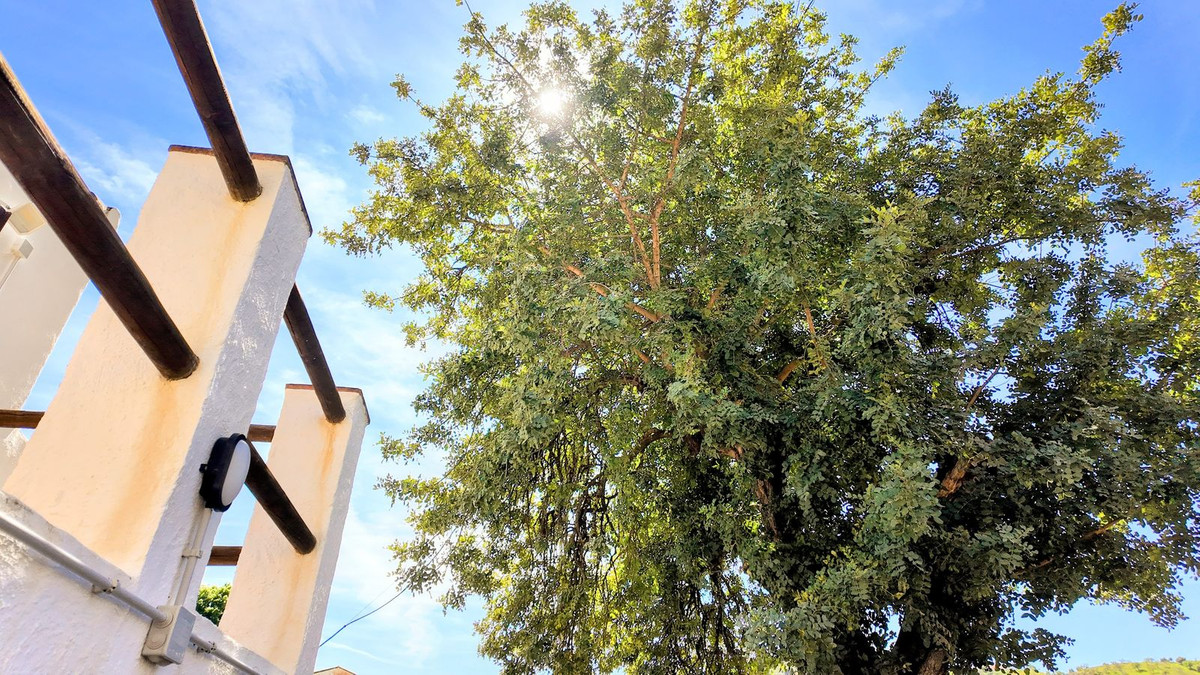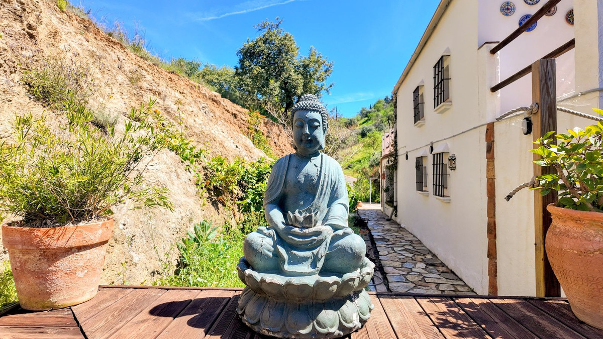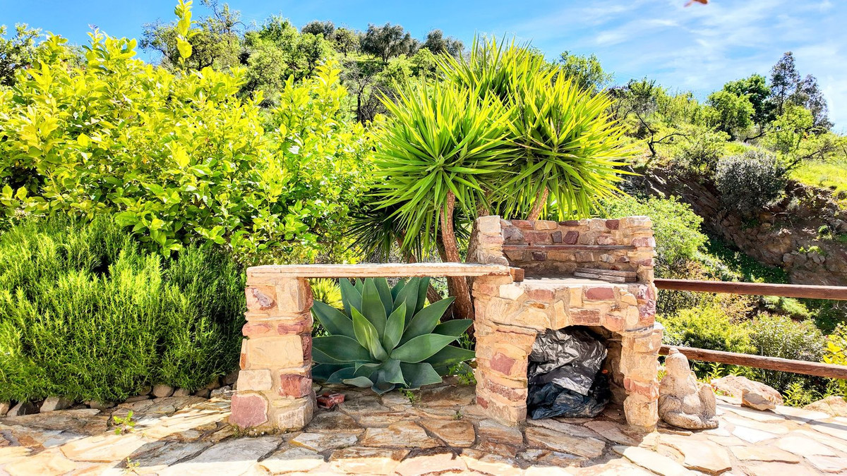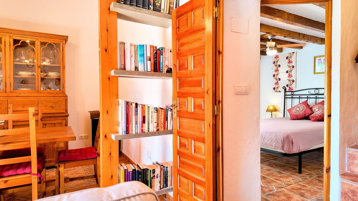 Der er en dør til den anden side af haven, hvor poolen er placeret