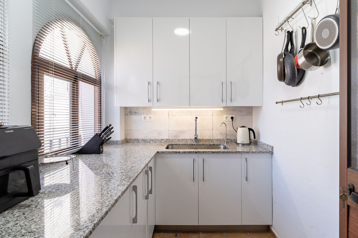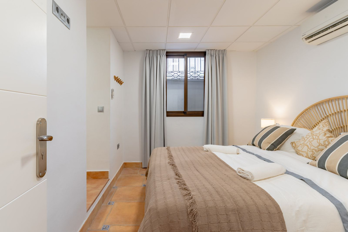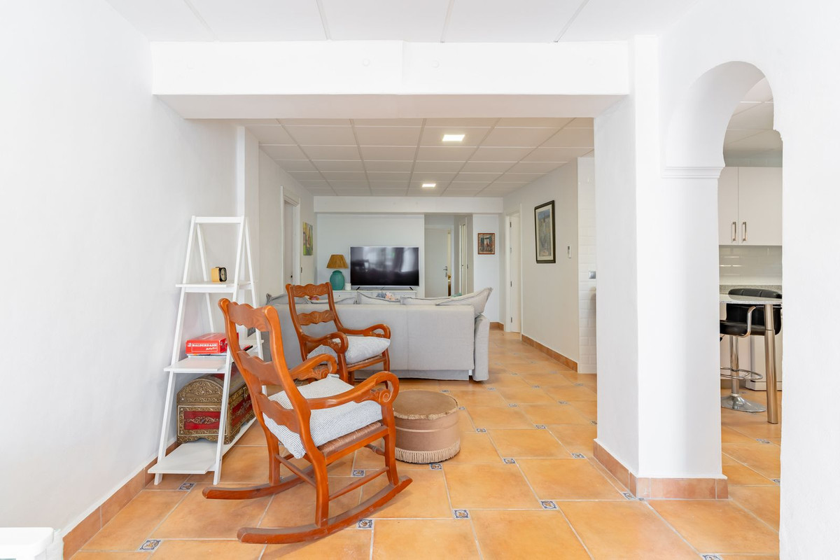 Indenfor har hovedplanen en rummelig opholds- og spisestue fyldt med naturligt lys, et fuldt udstyret køkken og tre soveværelser - hvoraf to har eget badeværelse. Fra opholdsstuen træder man ind i en fantastisk gårdhave i andalusisk stil med et roligt springvand – et idyllisk sted at slappe af.