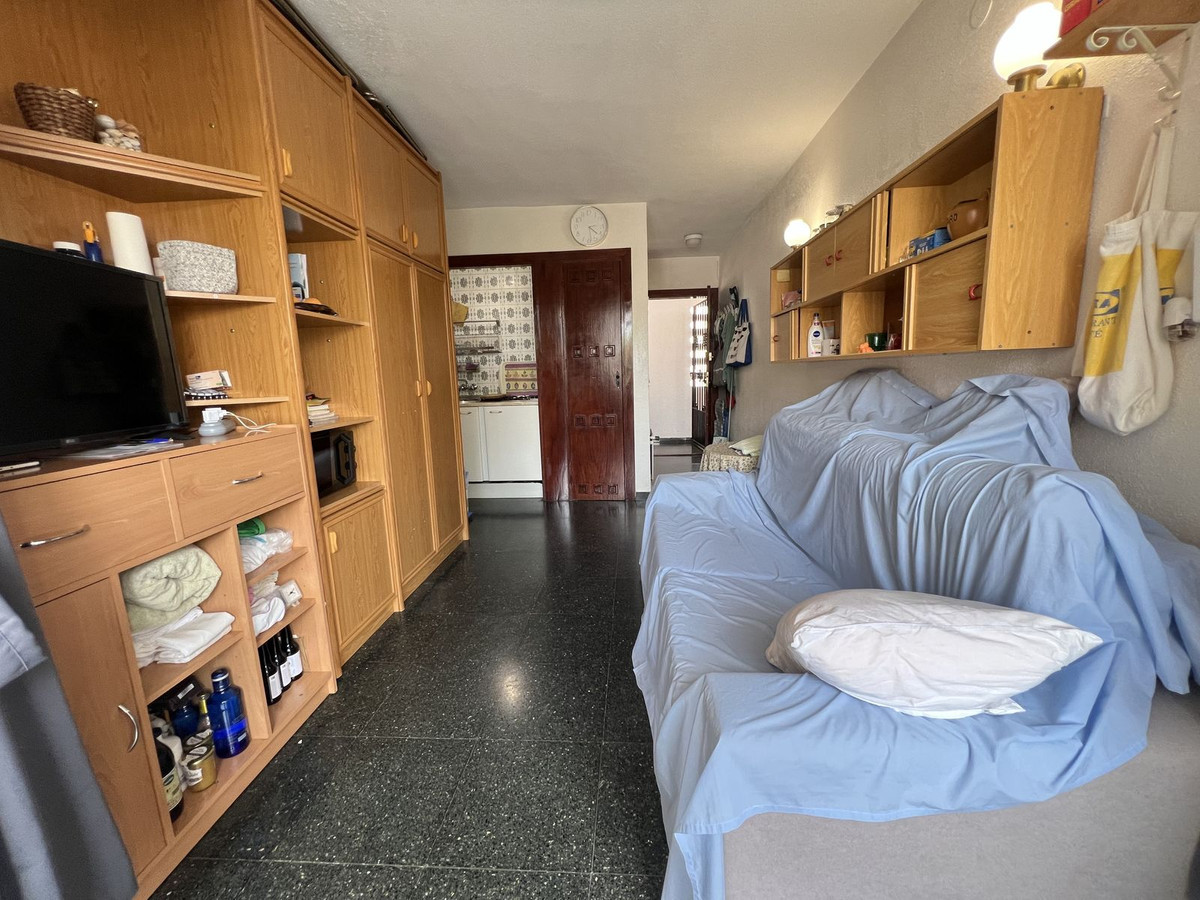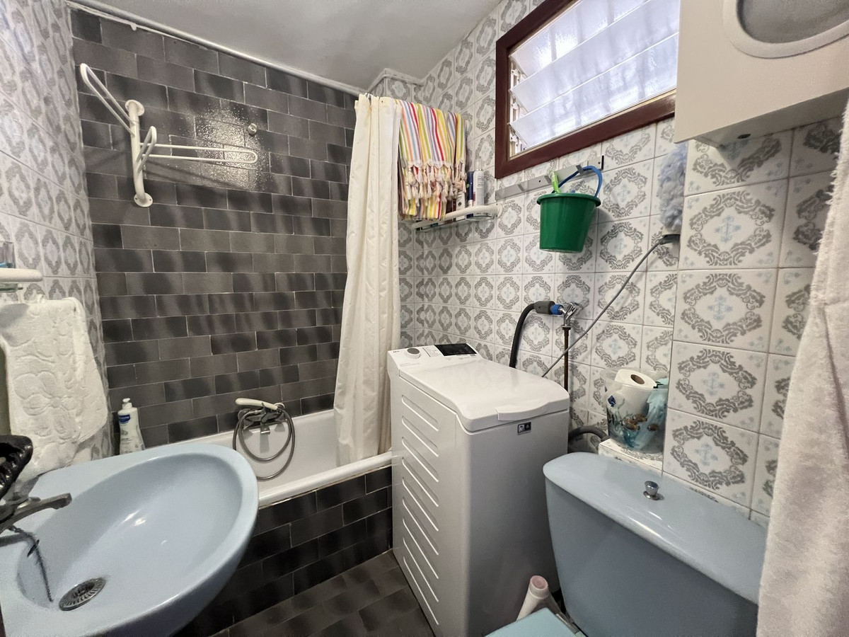 Upon entering, you're welcomed by a full bathroom with a bathtub. Then, a cozy and functional space includes a fully equipped kitchen, a sofa bed, a bunk wardrobe, and access to a pleasant terrace overlooking the pool with a partial sea view. The southeast orientation ensures plenty of natural light throughout the day. It also has a large closet on the terrace and a small pantry in the kitchen.