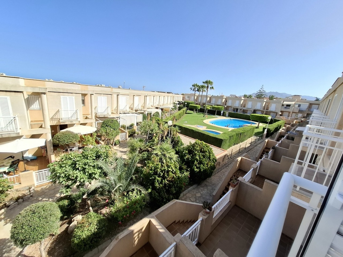 This delightful duplex townhouse situated within Urb La Solana del Mar in Garrucha is arranged over two floors and comprises three bedrooms and two bathrooms. It boasts two terraces - a rear terrace facing east with views over the communal gardens and swimming pool and a front terrace facing west towards the mountains.